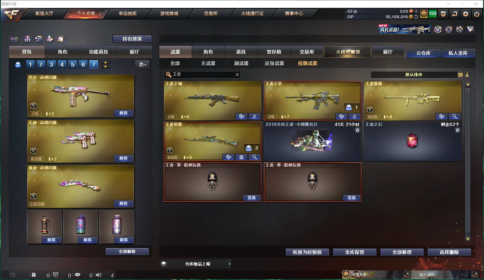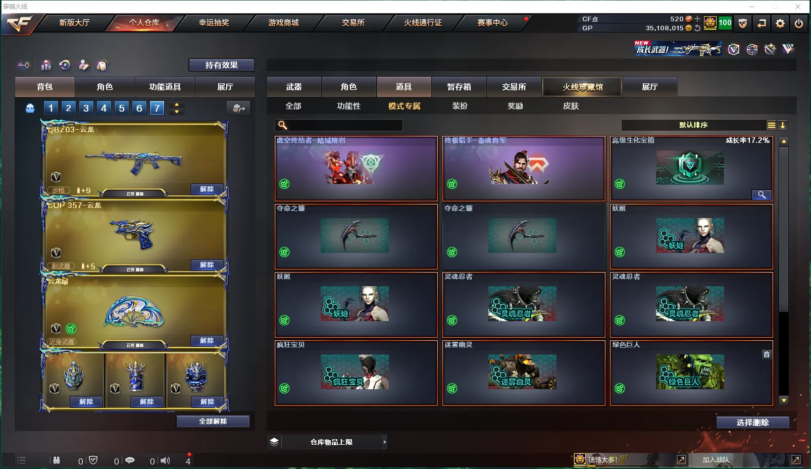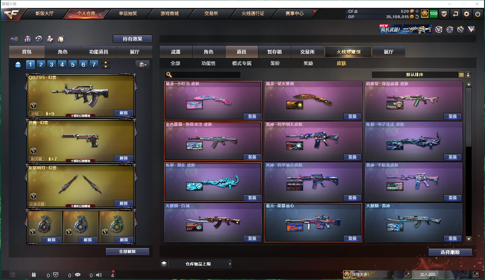 【皮肤】:超新星-深海萌鲨皮肤、金色蔷薇-热带奇洋皮肤、屠龙-星火燎原皮肤、雷神-机甲刑天皮肤、屠龙-小叮当皮肤、龙啸-蛇姬皮肤、炼狱-夏佐皮肤、炼狱-电子连击皮肤、死神-机甲核心皮肤、火麒麟-百城、雷神-宇航兔皮肤、毁灭-神秘黑洞皮肤、黑骑士-破界皮肤、毁灭-百城浙江皮肤、炼狱-玩具枪皮肤、死神-秘银、Barrett-金色蔷薇-蛇姬皮肤、火麒麟-雷神、黑龙-暗月、雷神-化蛇皮肤、AK47老兵传说皮肤、毁灭-黑大圣皮肤、火麒麟-AG战队皮肤、火麒麟-平天大圣、M4A1-千变-孔明皮肤、火麒麟-CFSTAR、修罗-CFSTAR
