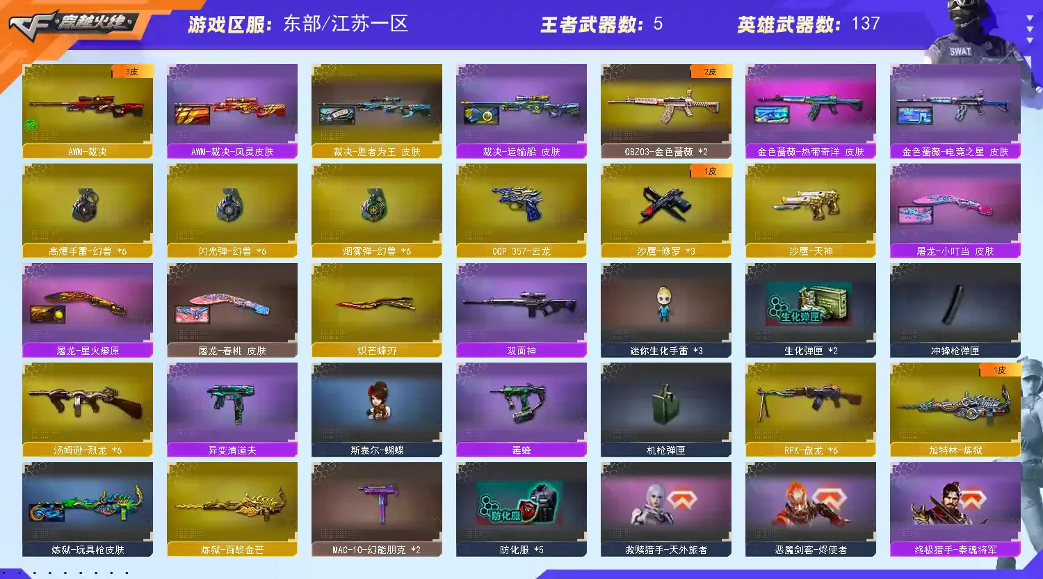 【生化】:斯泰尔-蝴蝶🦋、炽芒蝶刃(蝴蝶刀,生化加速神刀,最帅的耍酷刀)、毒蜂、异变清道夫、双面神、死亡之眼、轻型军用手斧-镜、MK5-炽火炎龙、救世主-黑桃战神、虚空终结者-暗域熔岩、终极猎手-秦魂将军、迷你生化手雷、生化手雷-小钢、生化手雷-机甲核心、生化手雷、雄黄酒手雷、疯狂宝贝、妖姬、变异宝贝、疯狂宝贝、绿色巨人、灵魂忍者、迷雾幽灵、夺命之镰、幽灵之刃、生化弹匣、防化服、减少停顿道具(不退包)、6盘6烈1炼
