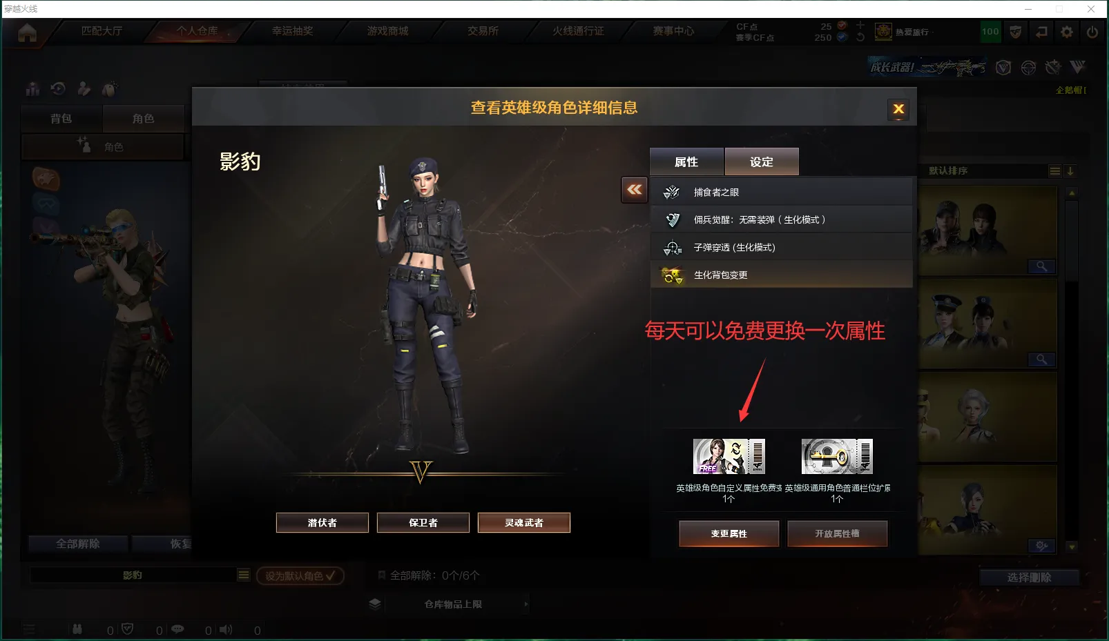 影豹(佣兵觉醒:无需装弹、生化觉醒:狂暴化、移动速度提升、生化背包变更)、
