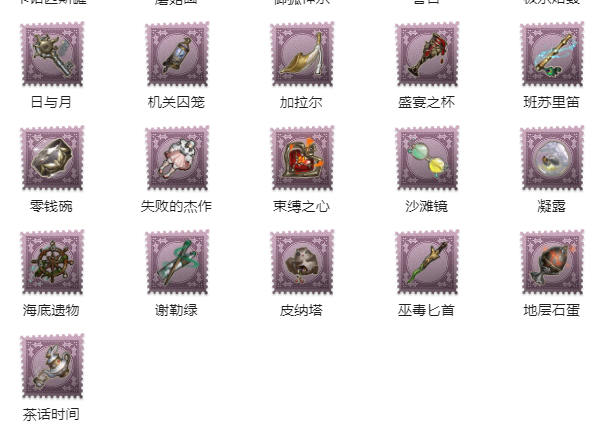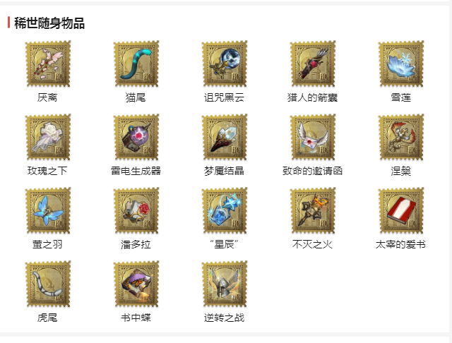 金挂23:缚翼 光明 夏 见证 调制架 太宰爱的书 虎尾 厌离 猫尾 诅咒黑云 猎人的箭囊 雪莲 玫瑰之下 雷电生成器 梦魇结晶 致命的邀请函 涅槃 萤之羽 潘多拉 星辰 不灭之火 书中蝶 逆转之战