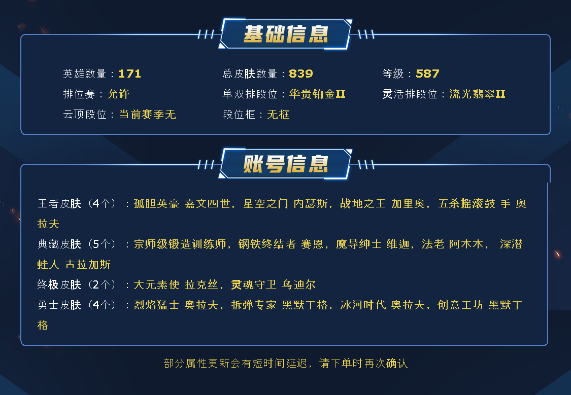 【538原皮肤140炫彩皮肤】真实伤害艾克、泳池女警、星守金克丝、大元素使、猴年女警、源计划派克、战斗校长悠米、IG全套、卧虎藏龙、海克斯阿木木、海克斯安妮、星之守护者EZ、猪年猪妹、马年皎月、龙年大嘴、醒狮、猴年莫甘娜、狗年狗头、虎痴之拳、蛇年飞机、龙刀、张辽、真实伤害艾克、源计划派克、战斗校长猫咪、FNATIC全套、IG签名全套、穿星魔锋、冠军掠夺者、情人节琴女、甜心宝贝琴女、情人节洛、甜心之翎洛、泳池派对女警、星之守护者金克丝、冰雪节玛尔扎哈、钢铁军团拉克丝、惊悚派对稻草人、糖果使徒稻草人、死亡誓约劫、送披萨的小姐姐、卧虎藏龙、泳池发条、泳池岩雀、征服者卡尔玛、奥德赛凯隐、霸天零式、黑夜亚索、神拳、源计划寒冰、源计划VN、奥德赛炸弹人、超级英雄凯南、电玩飞机、关羽、吕布、睡衣拉克丝、睡衣奶妈、西部魔影锤石、腥红之月卡特、腥红之月蛮王、腥红之月剑圣、玉剑传说剑姬、地狱火阿木木、黑潮、禁卫机甲