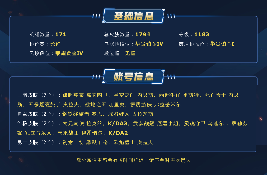 ~~喜欢记得收藏~~可排位~~1725皮全英雄丨90神话/至臻/海克斯丨IG套丨EDG套丨灵魂莲华套丨神龙尊者套丨KDA套丨玉剑男女刀丨泳池女警丨甜心格温丨破败锤石丨女帝卡特丨青花瓷ez丨北极星皎月丨觅心金克斯丨哨兵薇恩男枪丨鼠年武器瑟提丨电玩女警卡莎丨周年安妮诺手丨嫦娥羊丝花木兰丨星守卡莎风女ez~~租之前尽量查一下游戏ID,确保段位是您需要的,避免浪费您的时间~~请勿挂机逃跑故意送人头,谢谢合作,谢谢~~