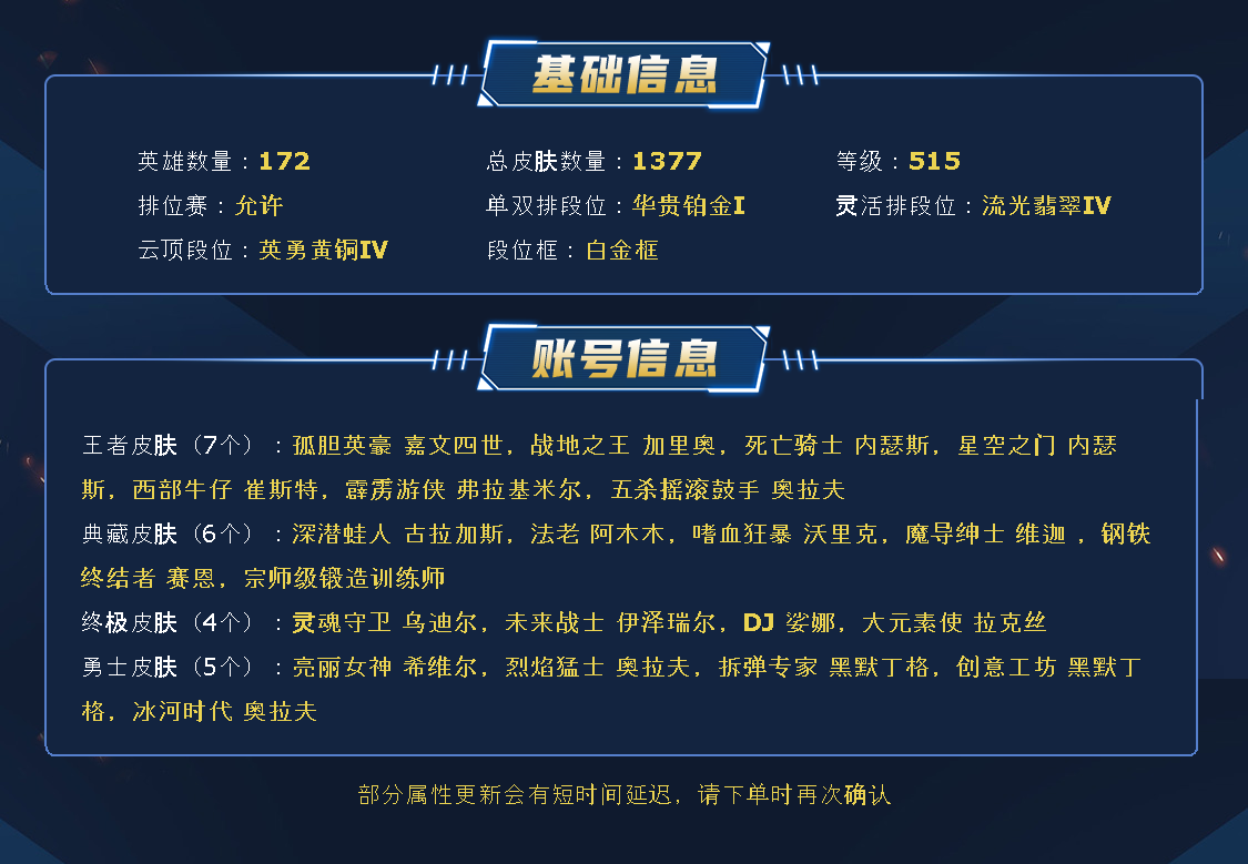 【全英雄可排位835原皮肤212炫彩皮肤】勇敢的心诺手、马年皎月、司马懿、斩星魔剑、征服者卡尔玛、奥斯曼大帝船长、奥斯曼大帝蛮王、庆典女皇、蛇年蛇女、蛇年飞机、蛇年安妮、电玩阿狸、电玩女枪、电玩锐雯、龙年猴子、龙琴、龙年大嘴、龙刀、虎痴之拳、猴年猴子、猴年女警、猴年莫甘娜、羊年金克丝、花木兰、张辽、生化领主蛮王、银白审判凯尔、哥特萝莉安妮、巨角幻兽牛头、西部天使赛娜、灵能特工莎弥拉、新K/DA卡莎、大元素使、灵魂守卫、未来战士EZ、DJ、暗黑灵魂牛头、创战纪希维尔、大魔王提莫、地底世界、电玩人马、冰雪节发条、钢铁军团拉克丝、冠军掠夺者、冠军之箭、冠军之隐、克格汪、冰雪节老鼠、觅心魔灵、觅心女王、觅心游侠、觅心之翼、魄罗骑士、胜利女神伊莉丝、死亡誓约卡特琳娜、死亡誓约维克托、死亡誓约劫、甜心宝贝安妮、甜心宝贝琴女、卧虎藏龙、万圣节人马、勇者阿狸、勇者豹女、御星魔矢、暗星锤石、黑夜亚索、黎明锐雯、神拳、神王诺手、神王盖伦、屠龙勇士潘森、未来战士女警、西部魔影卢锡安、星守阿狸、星守金克丝、源计划薇恩、源计划寒冰、貂蝉、关羽、吕布、武神、孙尚香、永恒之森小法、玉剑莫甘娜、源计划蔚、源计划烬