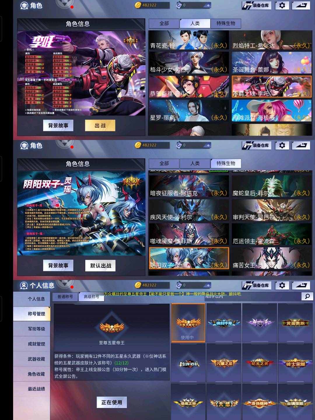 1区李扎✨3神话✨阴阳双子✨幽灭之息✨龙域✨浩日战神✨大元帅✨百万图鉴✨33五星✨紫焰骑士✨15星座