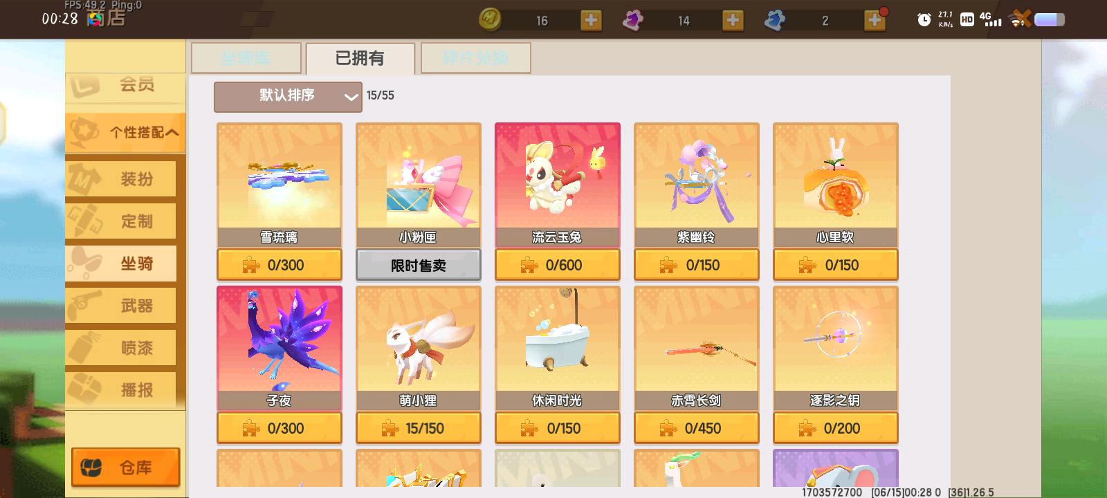 【苹果】 Vivo手机登录,不是vivo登不了,皮肤不是很多,只有30多个,坐骑不多,一个中极坐骑,十几个坐骑