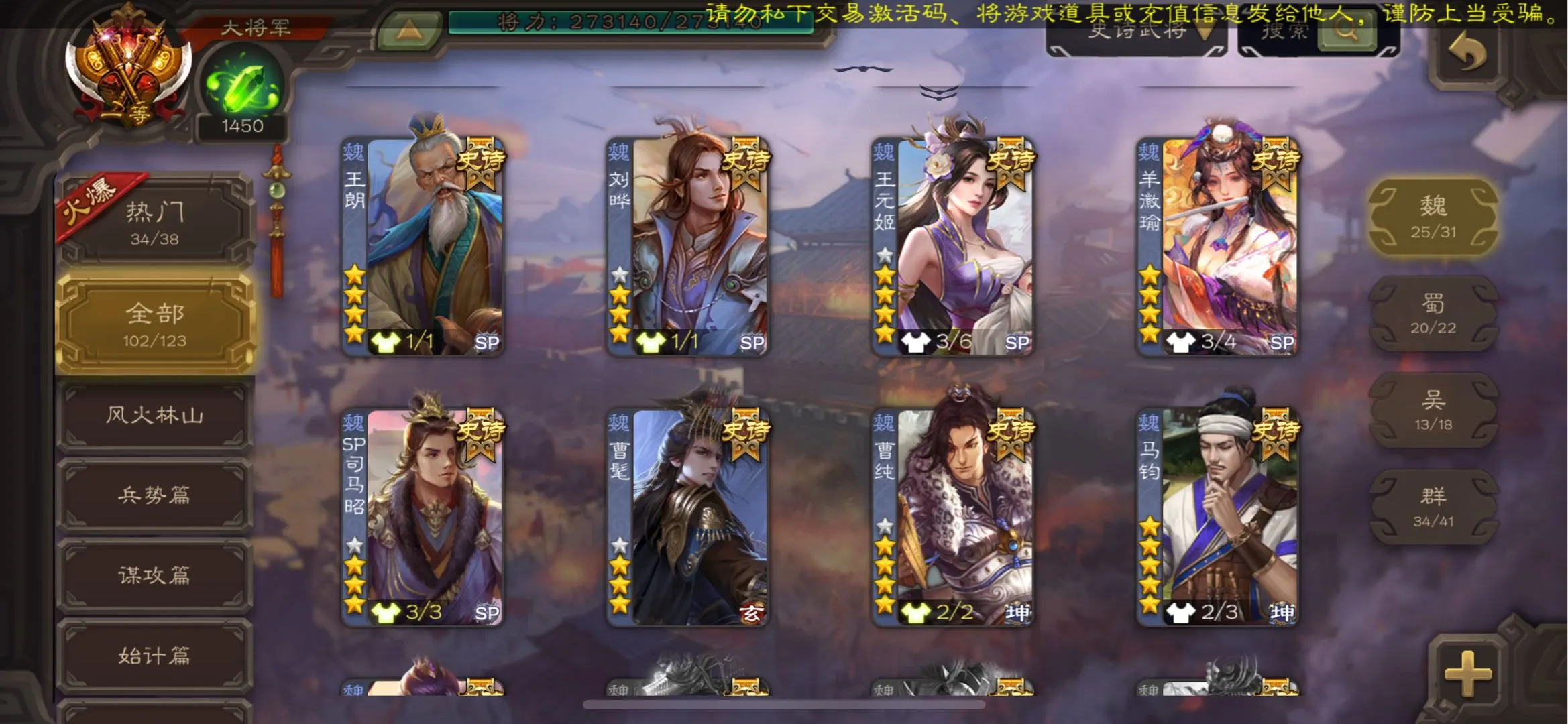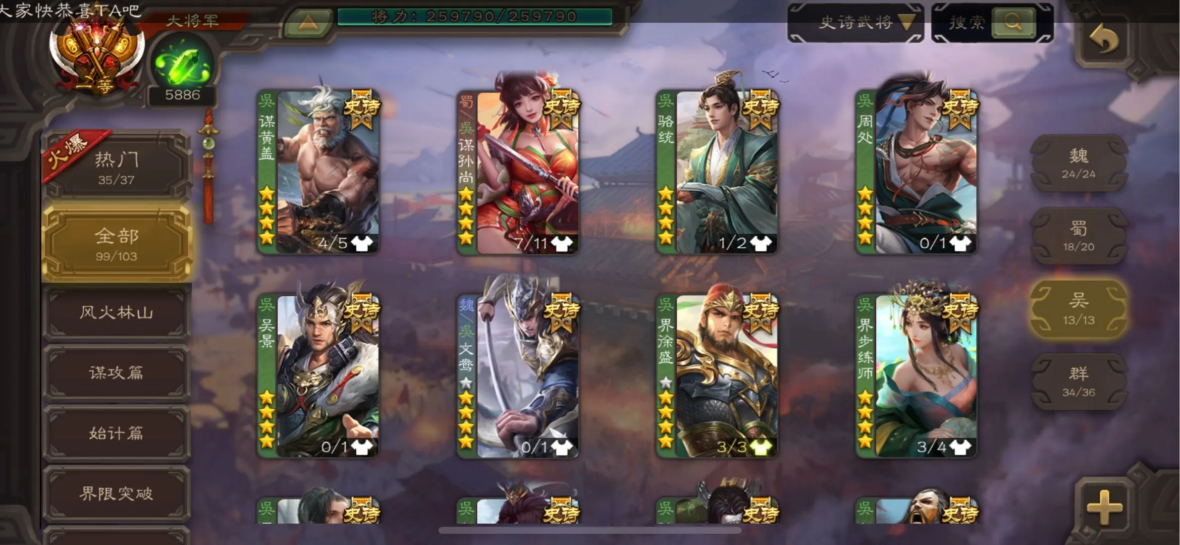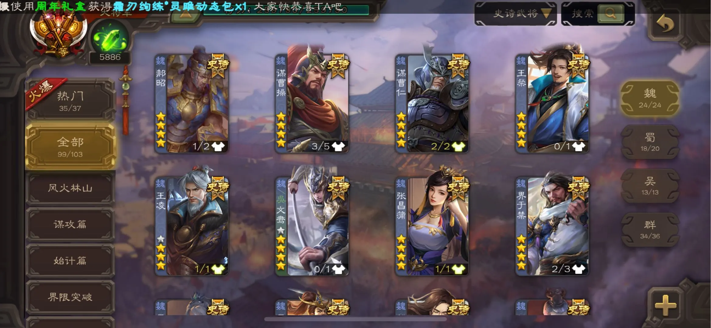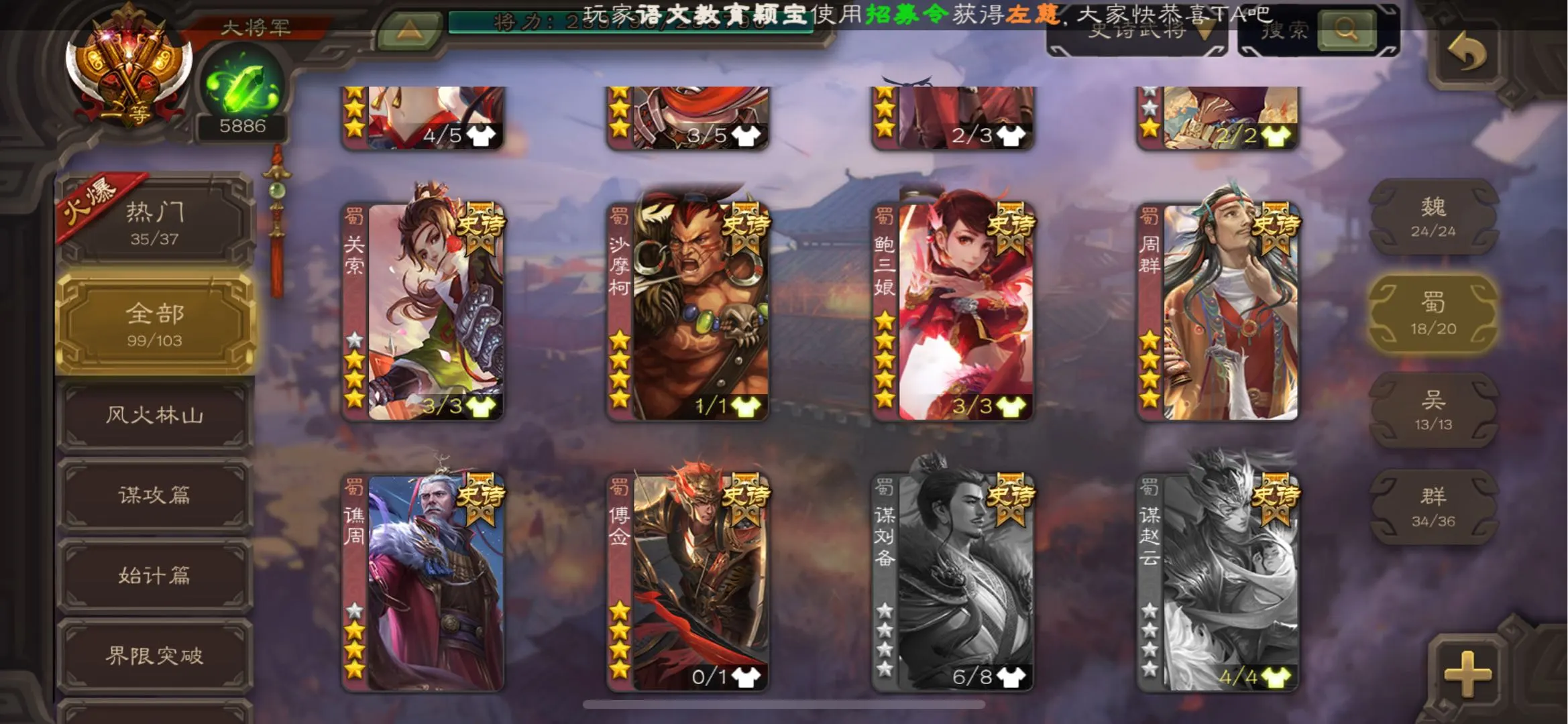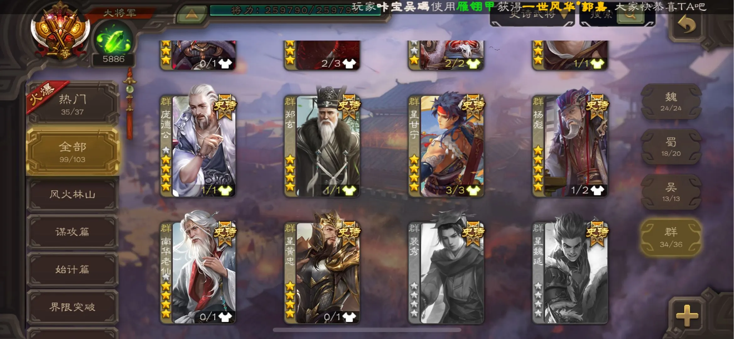 103/史诗武将数量
