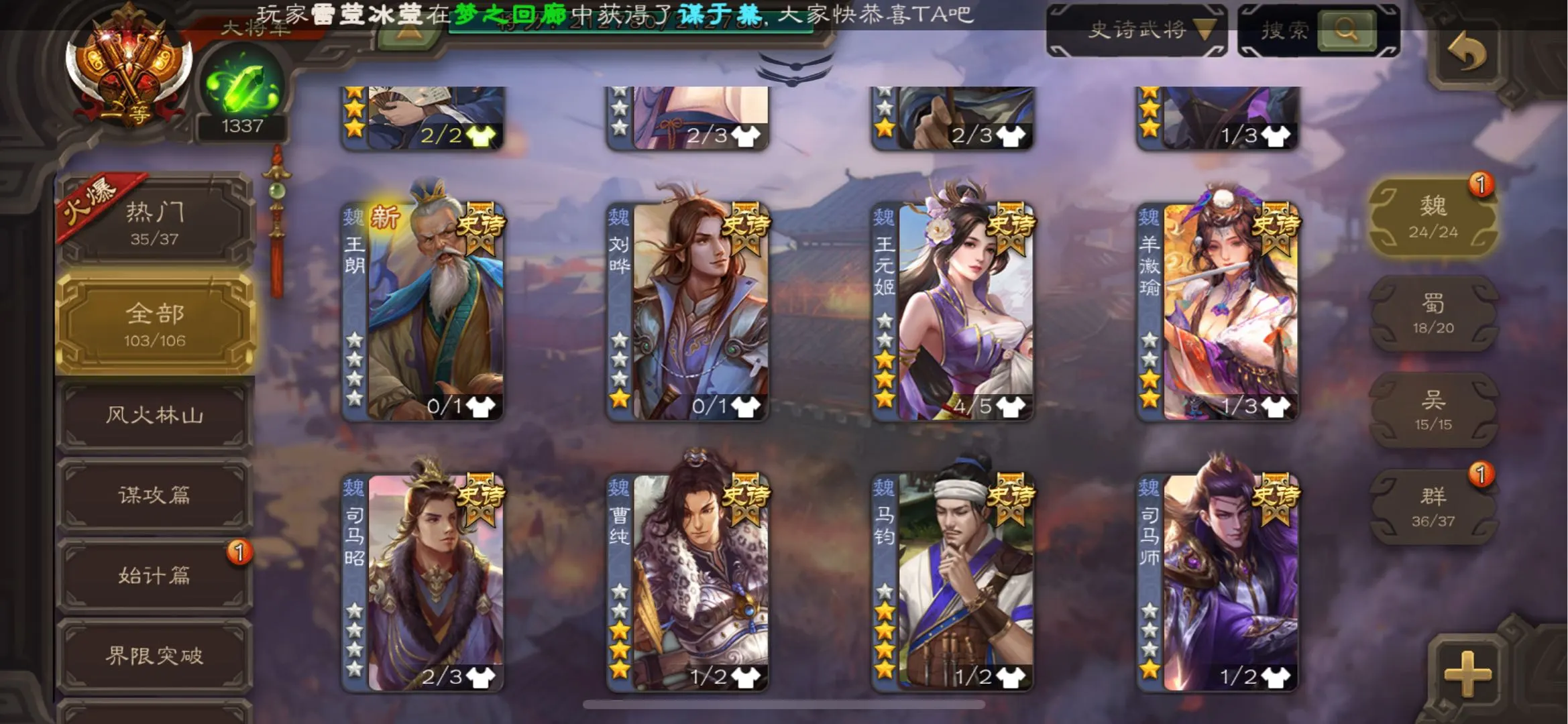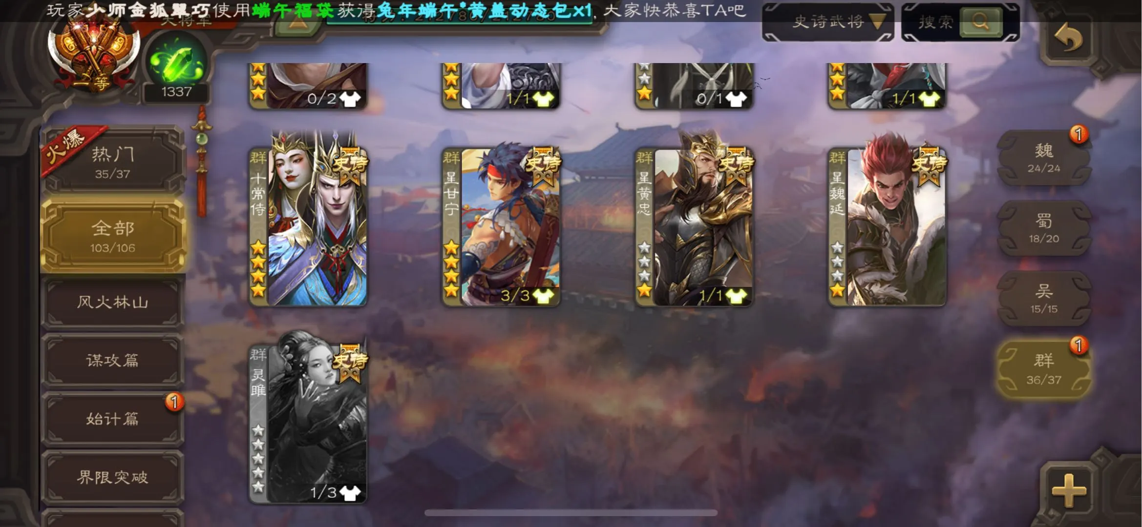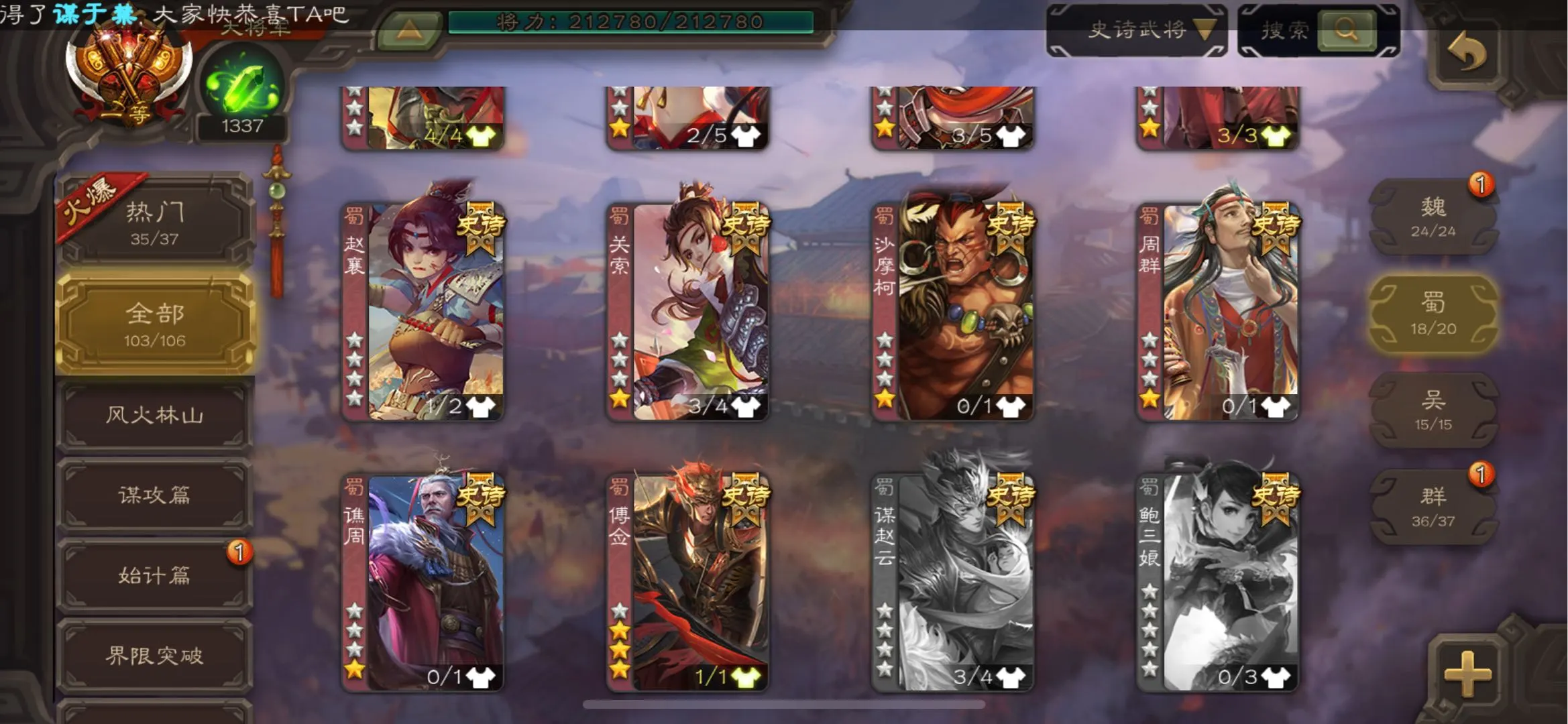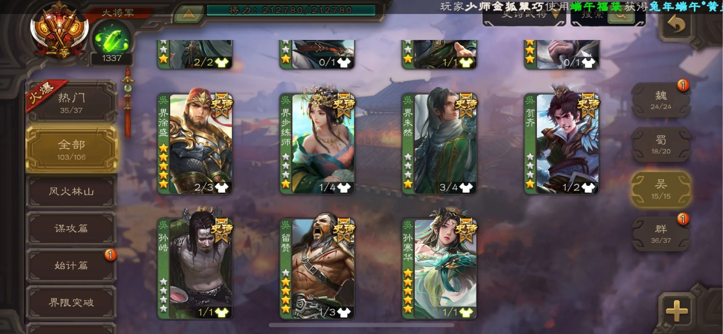 109/史诗武将数量