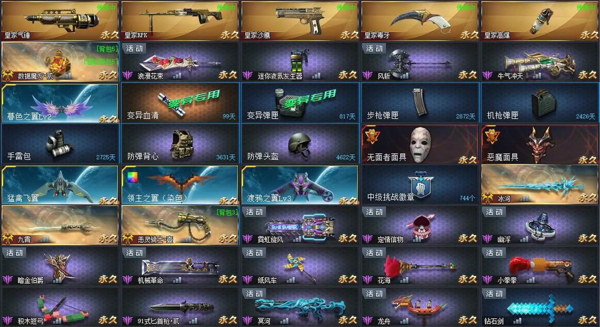 皇家皮肤:皇家气锤丨皇家RPK丨皇家沙鹰丨皇家毒牙丨皇家高爆丨