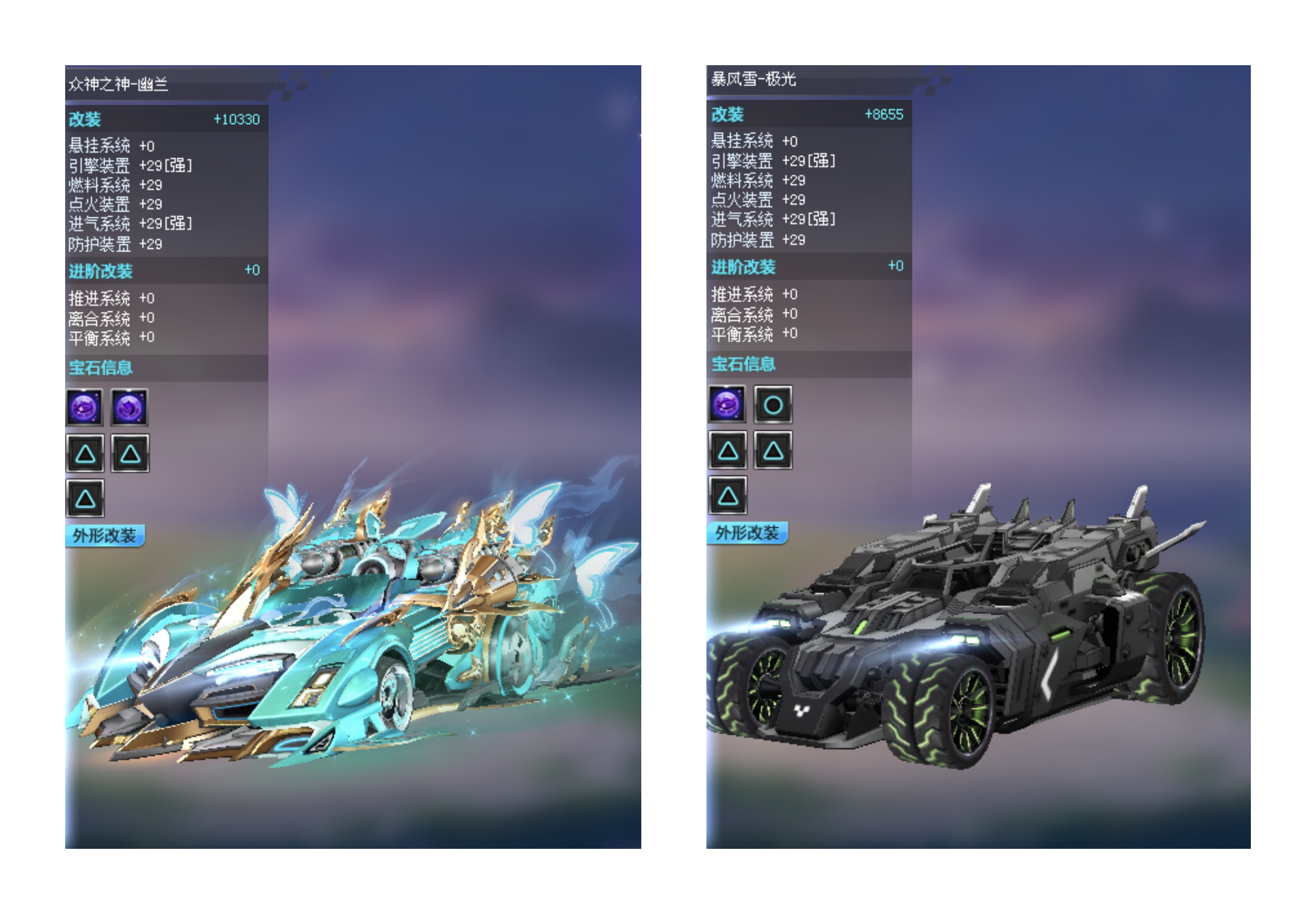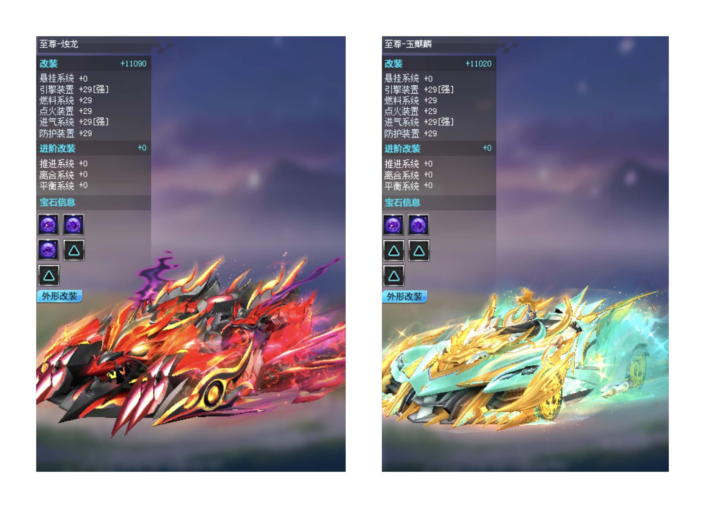 S车:至尊踏月&至尊真武&至尊烛龙&至尊玉麒麟全29满四/众神之神麒麟全29满四/终极爆天甲刘备全29满四/爆天甲朋克全29满四/暗影龙骑/毁灭者/龙胆逆鳞/超级喷雷蛇/暴风雪/等9辆s车