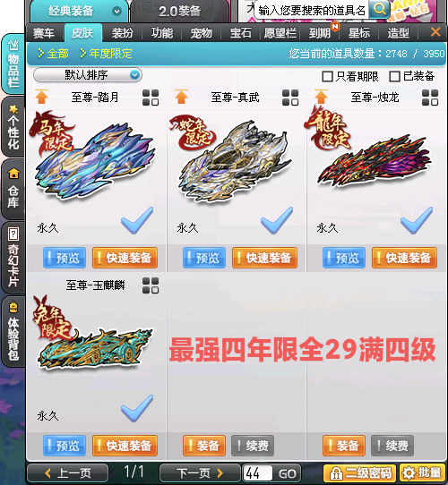 【马年限定】至尊踏月&至尊真武&至尊烛龙&至尊玉麒麟全29满四级/终爆刘备/众神幽兰/爆天甲奥丁/电玩/飞碟29满四/小贵妃强10