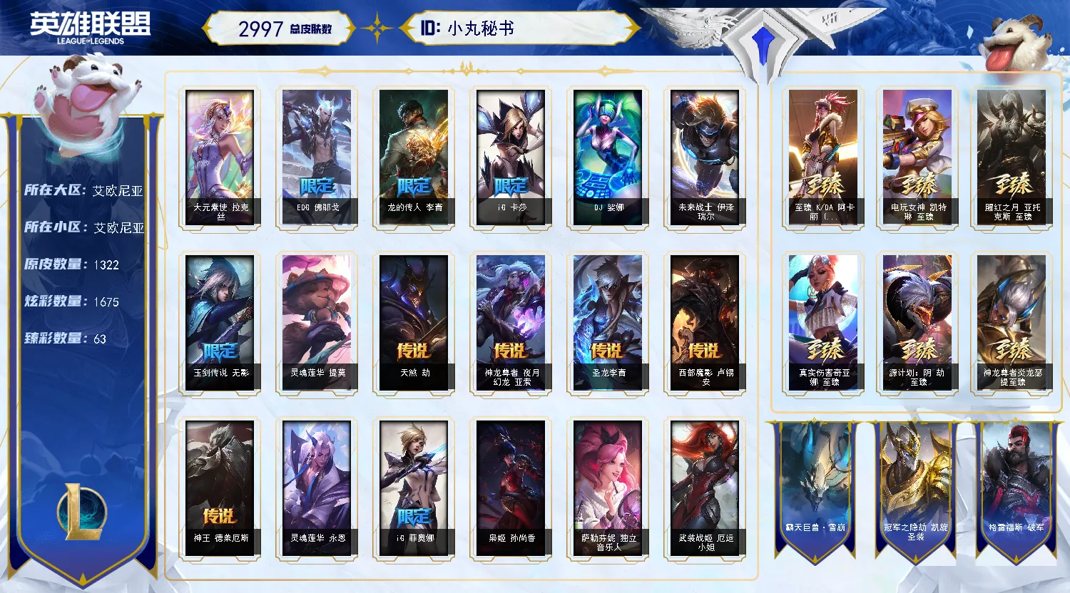 艾欧尼亚果壳✨2992皮丨商城清空丨可排位丨全套冠军皮丨全终极丨106至臻丨甜妹美女号丨玉剑男女刀丨