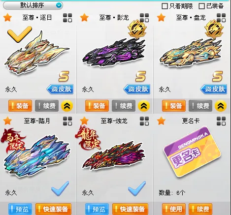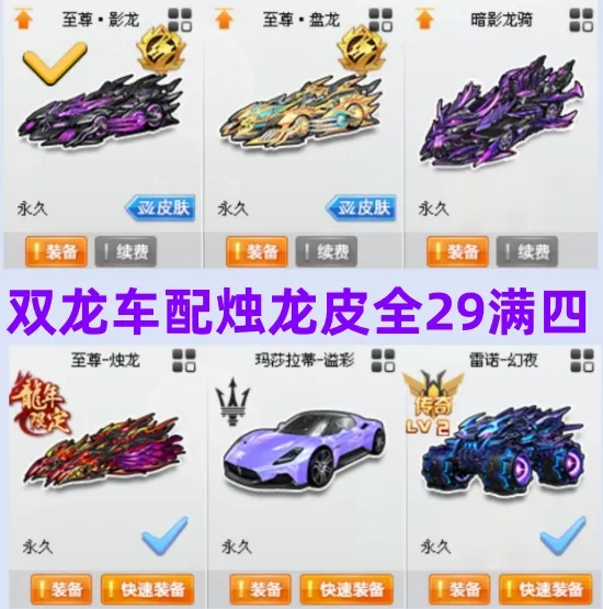 S车:马年限定至尊踏月/至尊影龙&至尊烛龙全29三颗四级/至尊盘龙/暗影龙骑/龙胆逆鳞