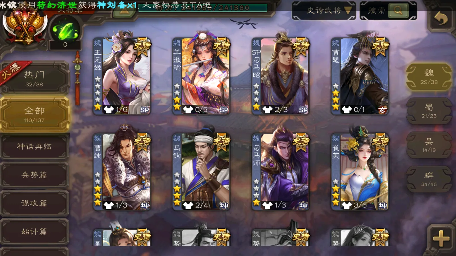 【全平台】 【锦鲤有卡】有手气卡111史诗神姜维崔芙动刘焉髦神鲁肃回廊双动杜预回廊神郭嘉回廊钟会回廊神荀彧