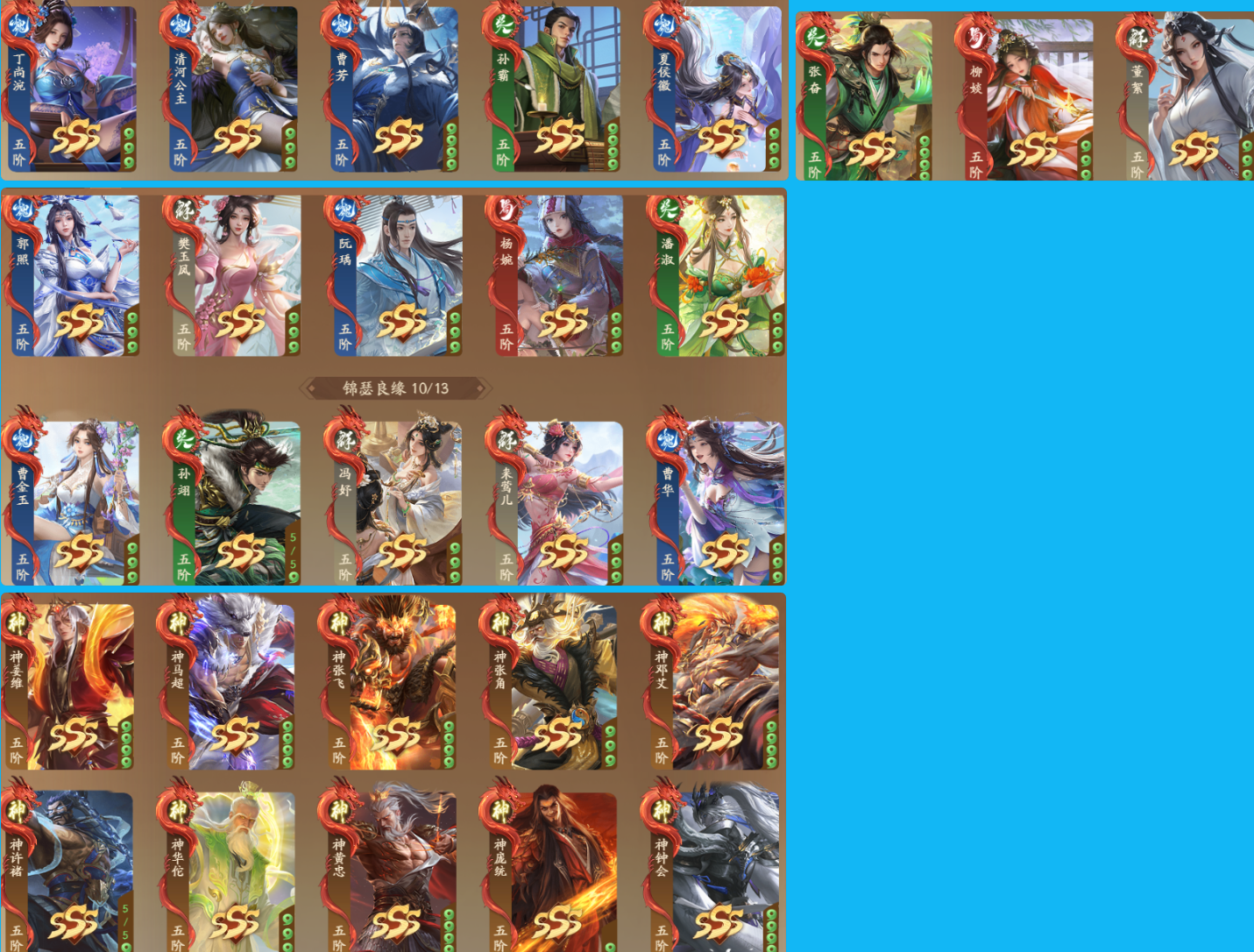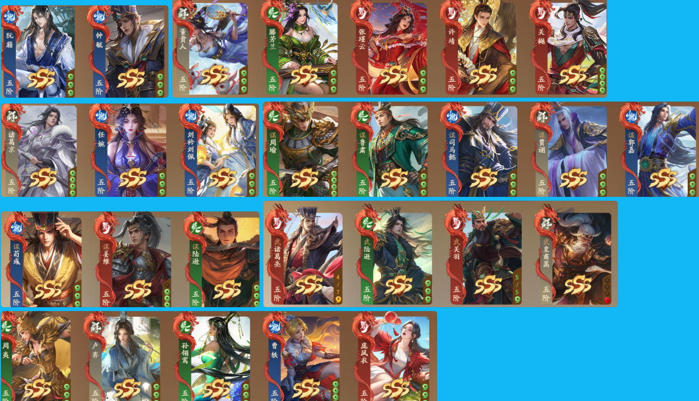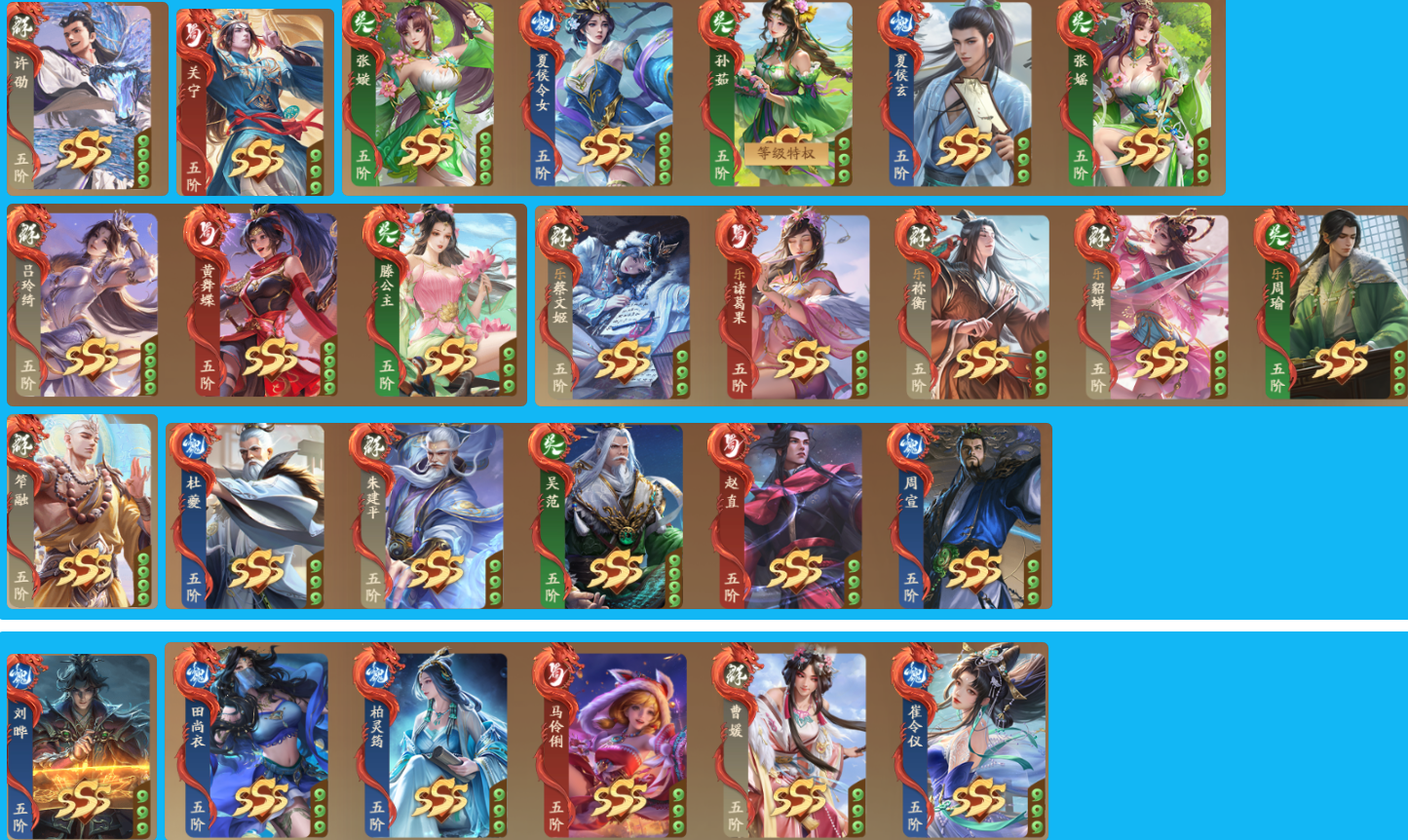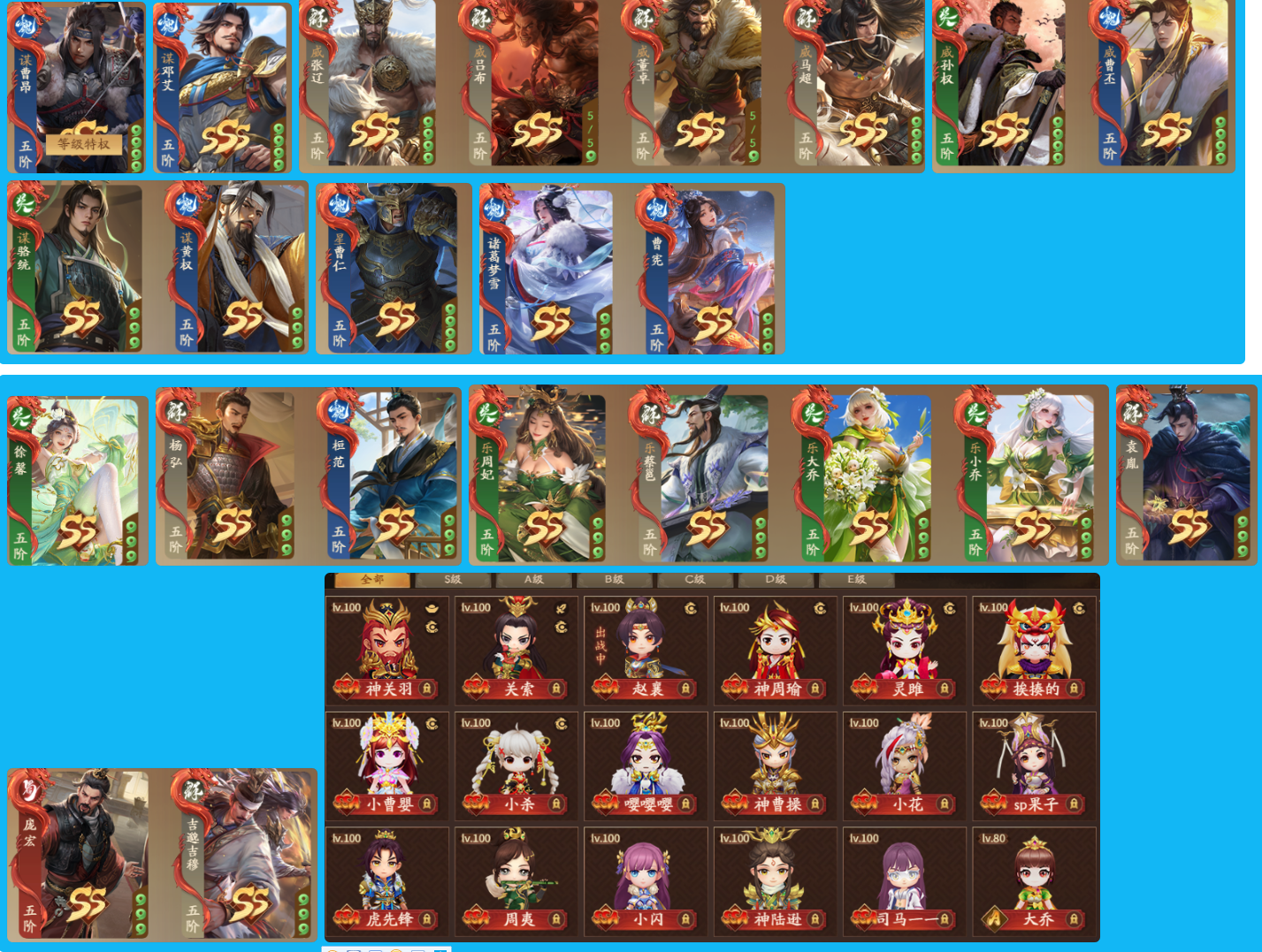 谋蒋干谋黄权马铁sp祝融吉邈吉穆徐馨谋曹洪乐蔡邕诸葛尚庞宏星曹仁袁胤刘晔曹宪张曼成张璇丁尚涴乐大乔乐小乔乐祢衡谋关平星袁绍星董卓乐綝牛辅凌操等