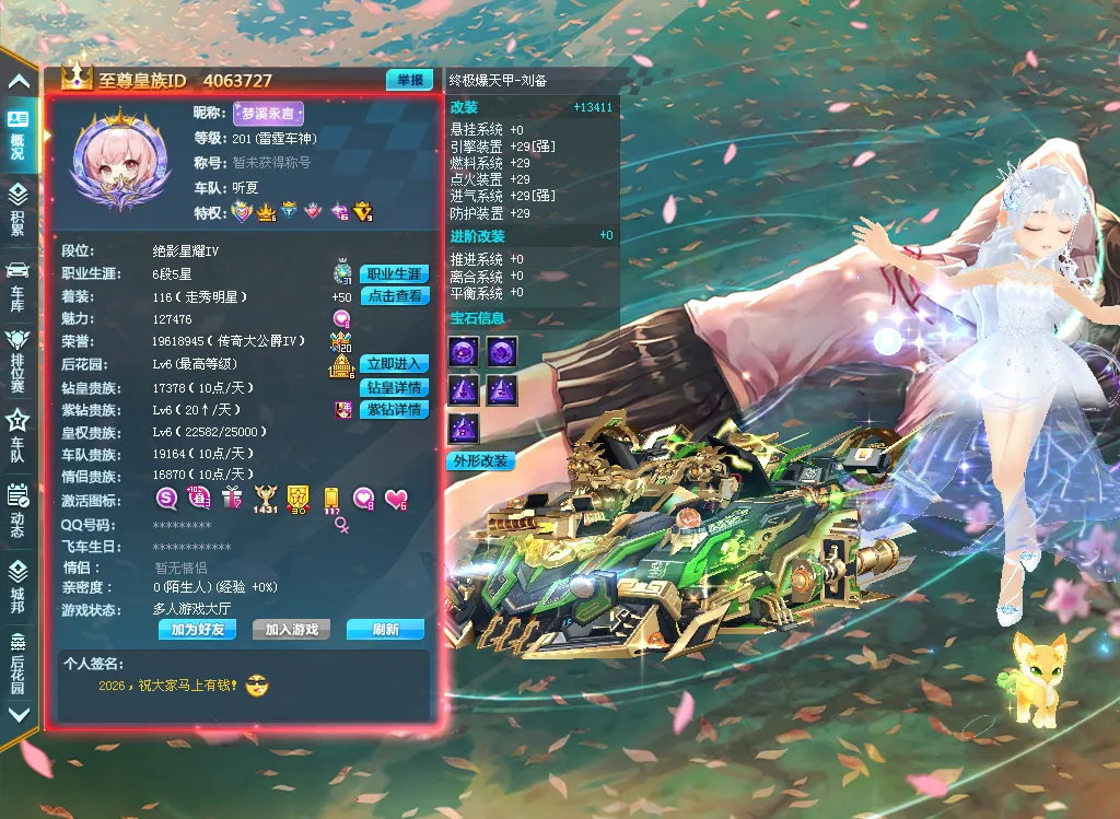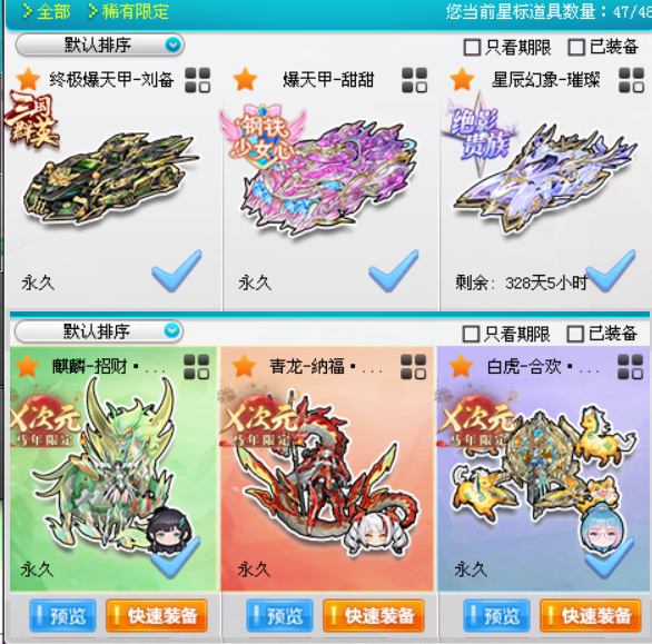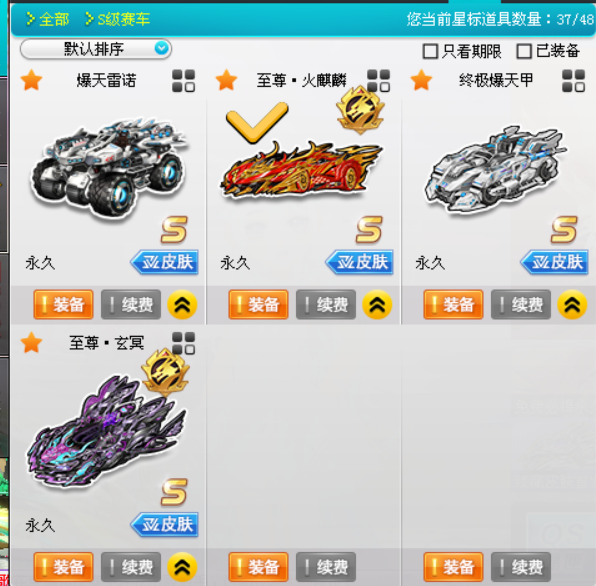 s车:至尊踏月/至尊烛龙、绘春生/至尊应龙/至尊玉如意、玉麒麟/至曜影虎琉璃主/爆天雷诺金刚/终极爆天甲刘备/以上均全部满改全29满四级