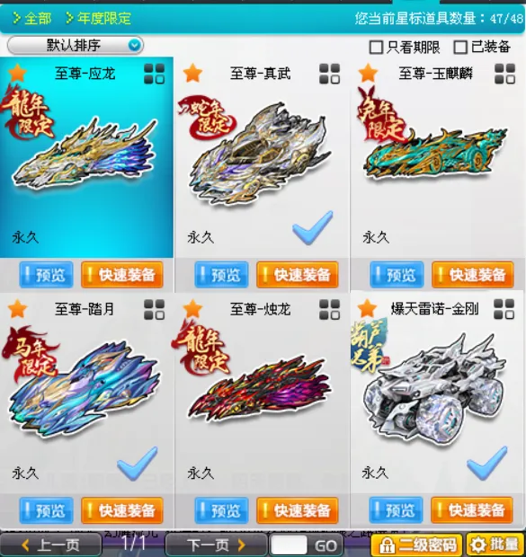 【五年限】马年至尊踏月/白虎合欢/至尊真武/至尊烛龙纳福/至尊玉麒麟玉如意(全部满改全四级)麒麟强十