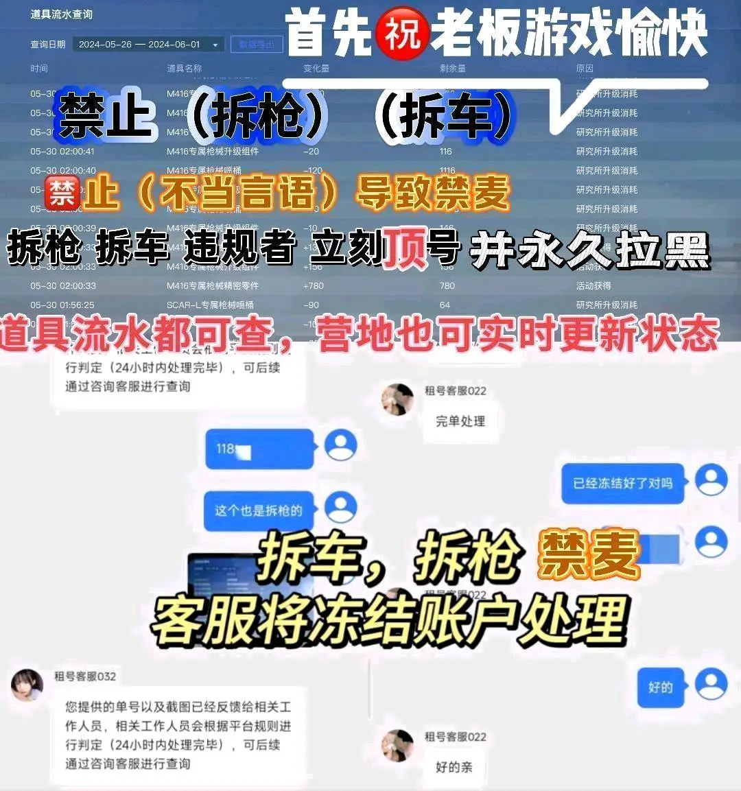 各位老板请文明游戏,如若发现禁言马上顶号结单处理,永久拉黑,并上报平台封禁设备处理❗️