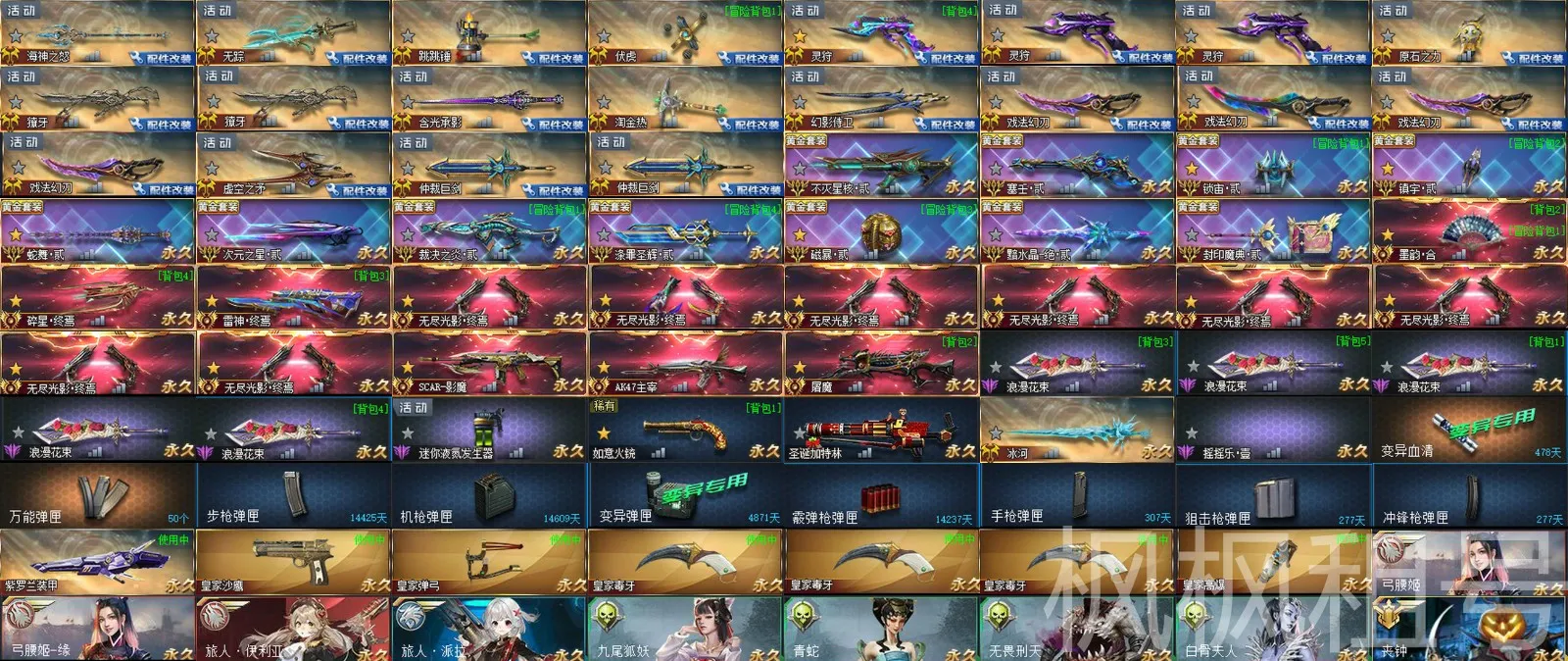 配件✨海神之怒丨无踪丨跳跳锤丨伏虎丨灵狩 x3丨原石之力丨獠牙 x2丨含光承影丨淘金热丨幻影侍卫丨戏法幻刃 x4丨虚空之矛丨仲裁巨剑 x2丨