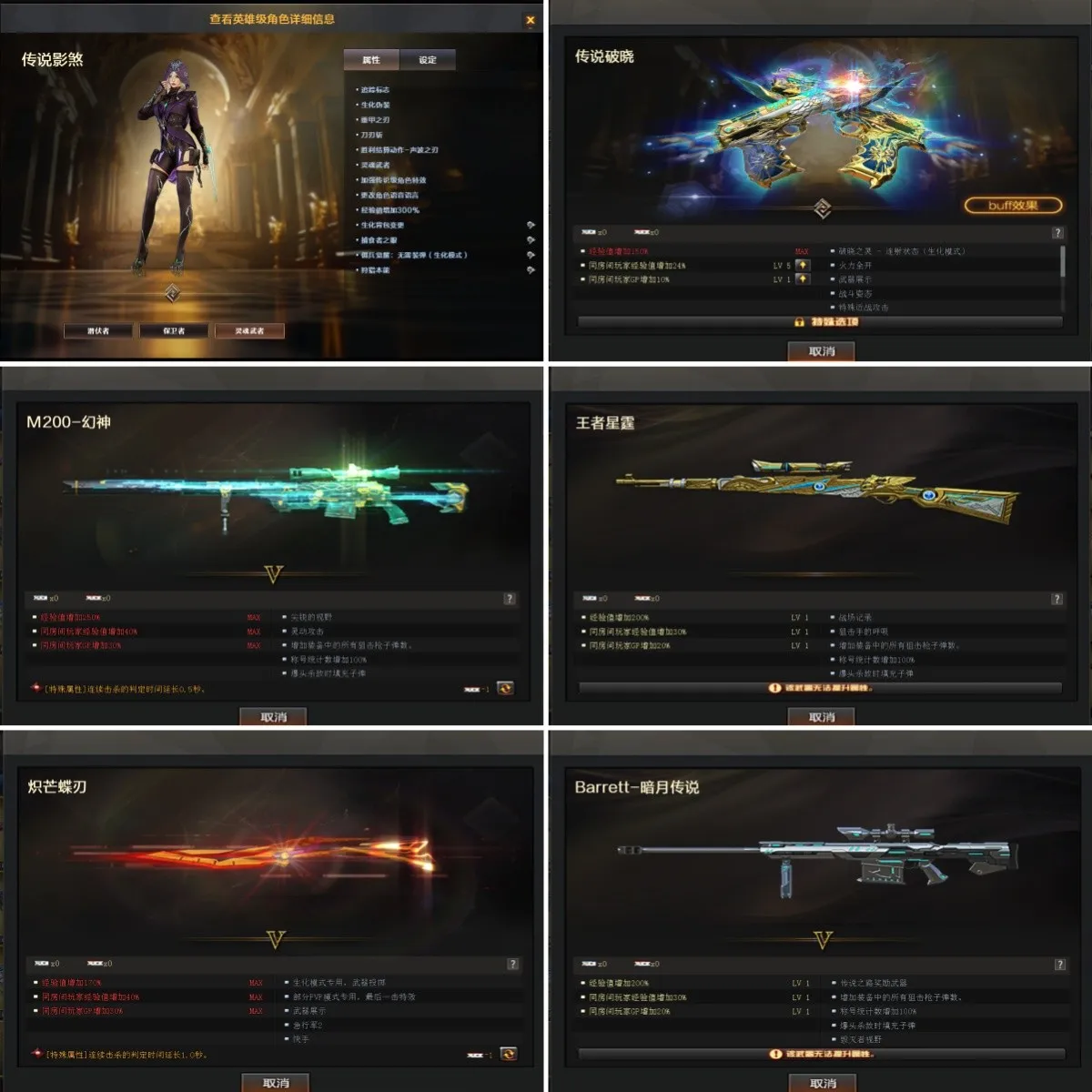 【英雄武器】_M200-幻神/Barrett-毁灭(2)/Barrett-极光/Barrett-朱雀/barrett-金色蔷薇(2)/Barrett-暗月传说/王者之怒-觉醒版/AWM-天龙/AWM-裁决(2)/M4A1-雷神(3)/M4A1-黑龙/M4A1-龙血(4)/M4A1-黑骑士(2)/M4A1-雷霆/M4A1-猎神/王者之势-觉醒版/Scar Light-白虎/白虎-电玩蓝兔/AK12-天启/AK47-火麒麟(2)/AK47-无影/AK47-黑鲨/AK47-黑武士/AK-47-猩红传说(7)/AK47-机械迷城/AK47-B-战士/AK47-B-战神/AN94-超新星/QBZ03-金色蔷薇/王者之心-觉醒版/9A91-烈火/RPK-盘龙(6)/汤姆逊-烈龙(4)/AA-12-雷霆/加特林-炼狱(2)/COP 357-云龙/雷霆之契/沙鹰-修罗(4)/柯尔特-竞技荣光(2)/USP-雷暴/云龙扇/麒麟刺/麒麟刺-堕天神/龙啸-堕天神/擎天(2)/擎天-竞技荣光(2)/王者之击-觉醒版(2)/屠龙(3)/雷霆之锋/斩神刀-雷暴/炽芒蝶刃/高爆手雷-云龙/高爆手雷-雷暴/高爆手雷-雷霆(5)/高爆手雷-堕天神(2)/高爆手雷-竞技荣光(3)/烟雾弹-云龙/烟雾弹-雷暴/烟雾弹-雷霆(5)/烟雾弹-堕天神(2)/烟雾弹-竞技荣光(2)/闪光弹-云龙/闪光弹-雷暴/闪光弹-雷霆(5)/闪光弹-堕天神(2)/闪光弹-竞技荣光(2)/黑武士-锦绣游龙
