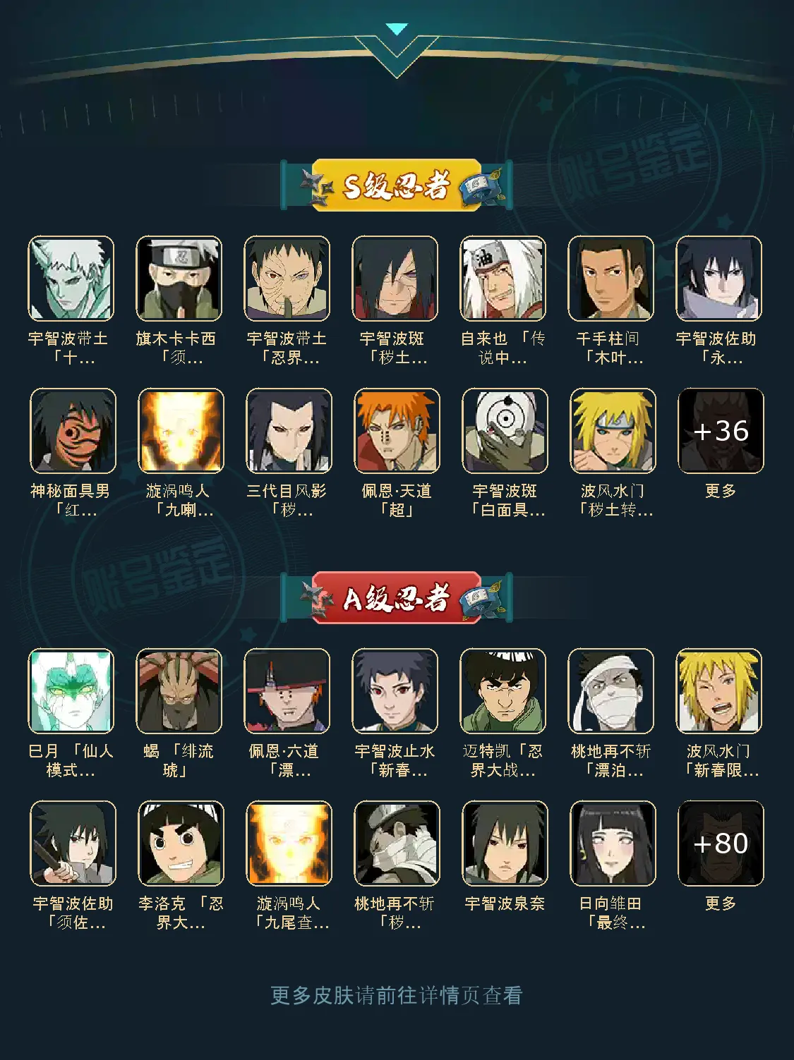 47S/85A/V15/2862W 通灵34个 皮肤;差夏日鼬 钢铁迈特凯 新春我爱罗 三船 场景;雨隐村 砂隐村 云隐村 木业周年庆 砂隐春节