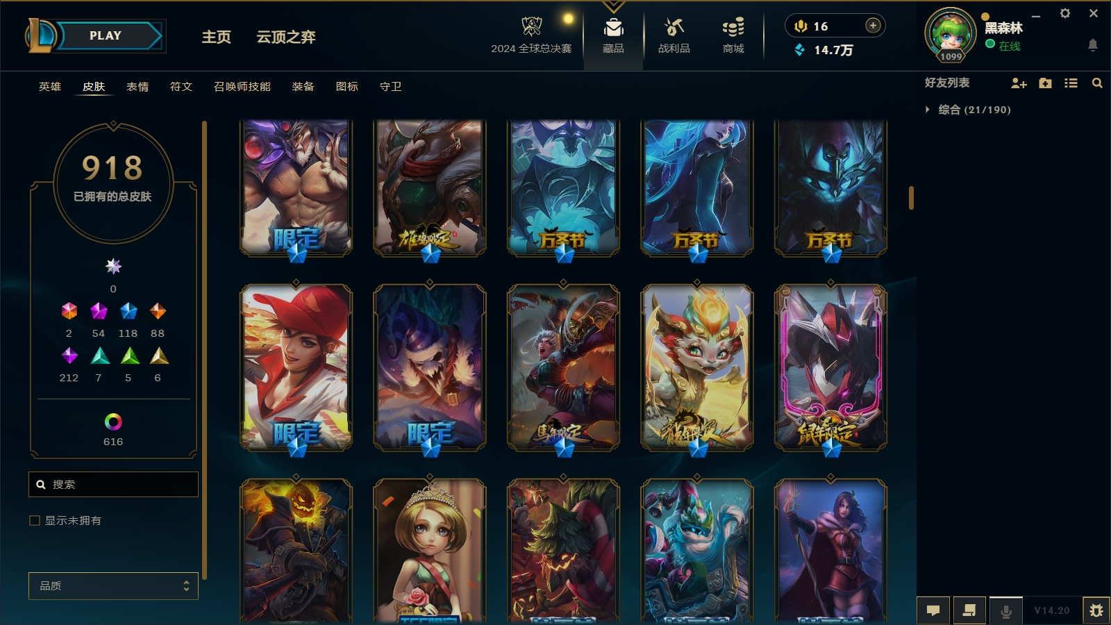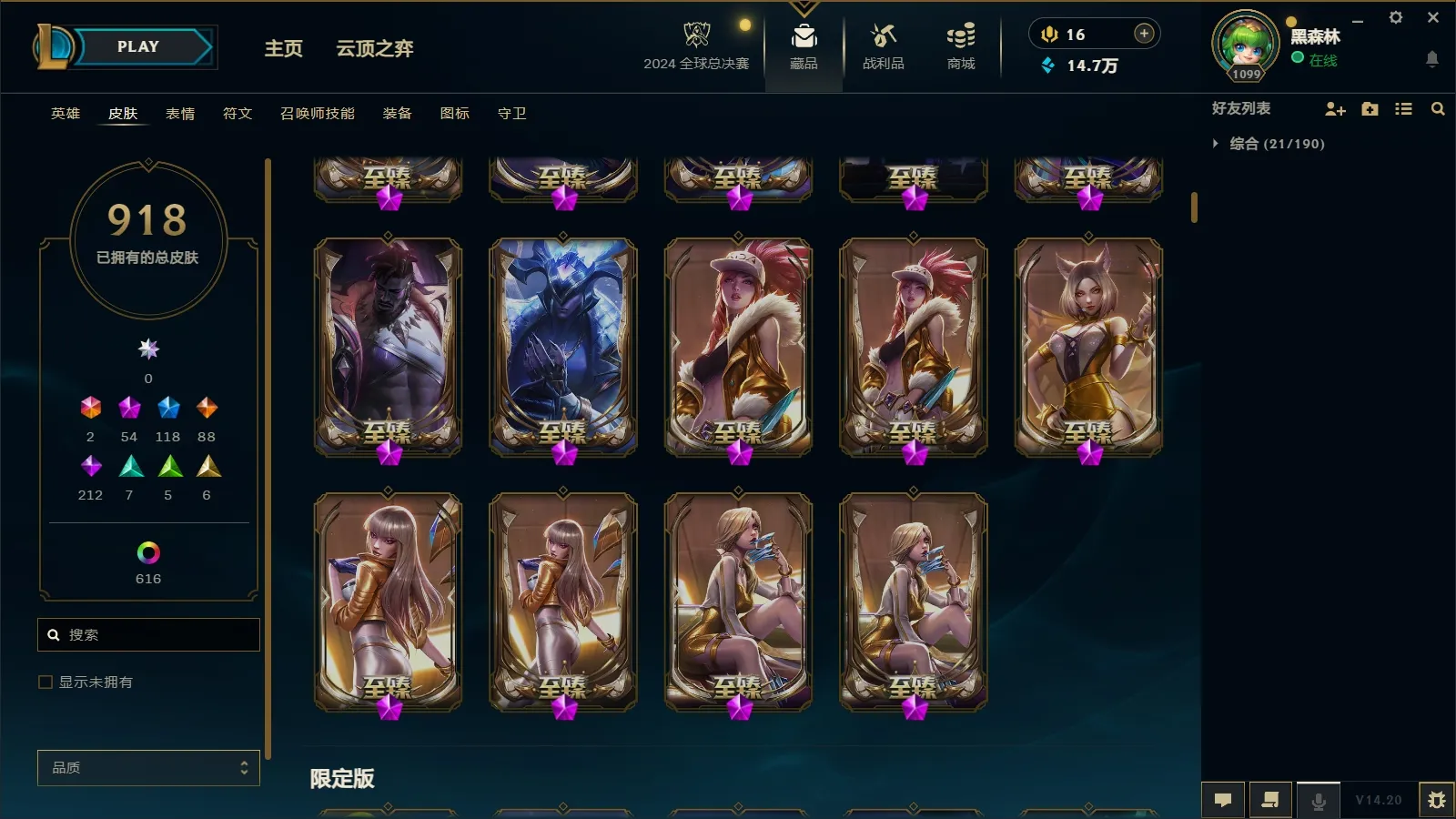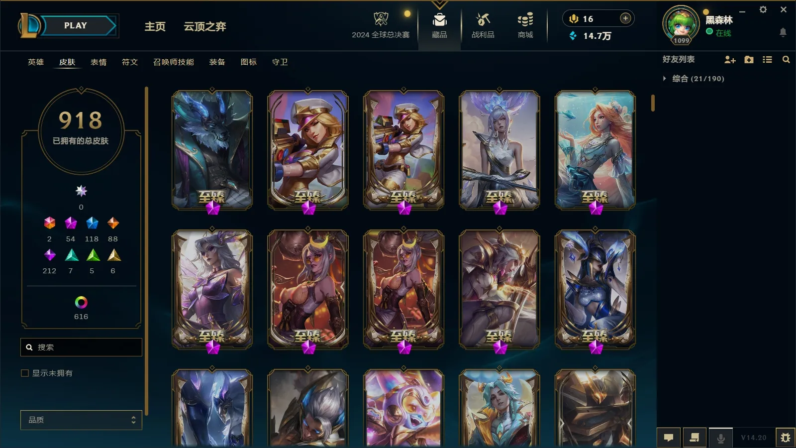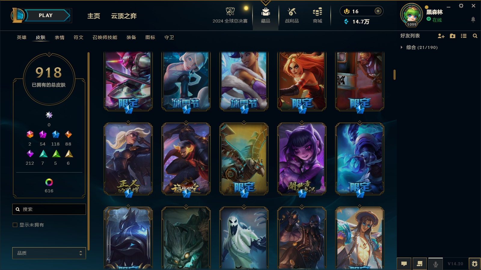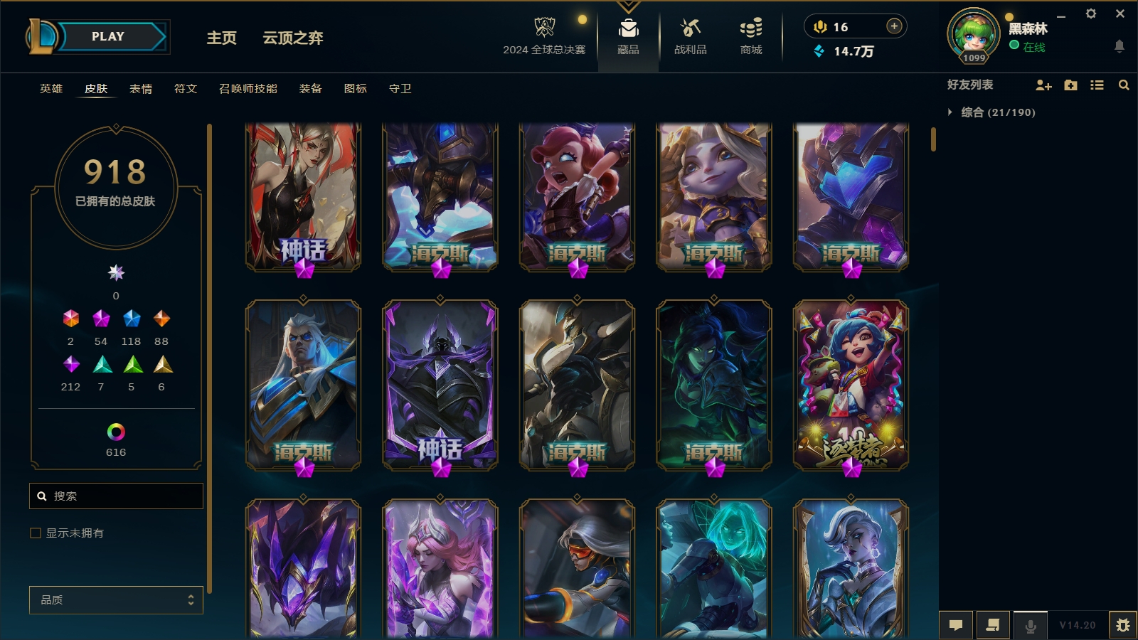 2000皮肤〓58至臻海克斯〓哥特摄魂〓玉剑男女刀〓神龙亚索〓沄顶神话格温拉克丝〓灵剑之境棋盘