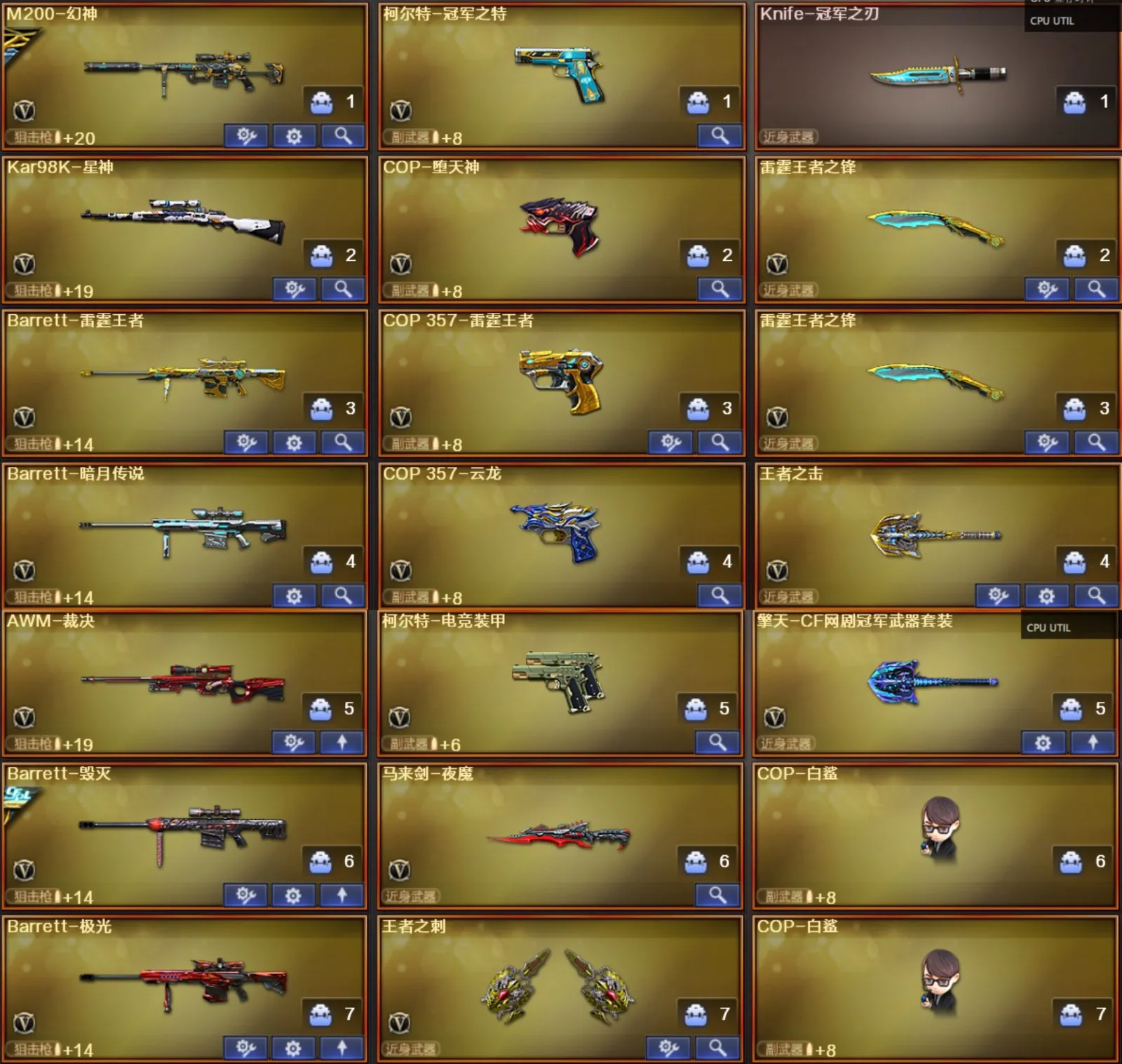 🔥副武器:冠军之特🔥COP堕天神+雷霆王者+运龙🔥电竞柯尔特🔥破空枪刃🔥