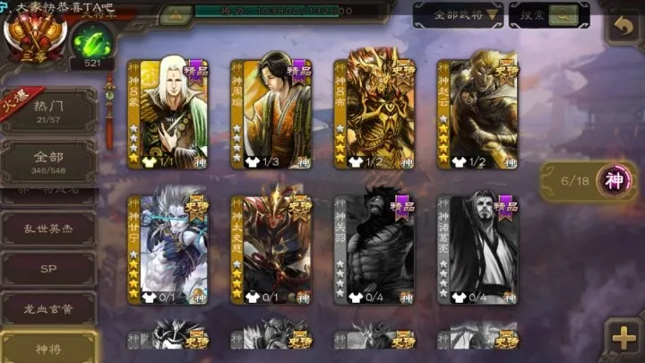 【全平台】 神甘宁,神太史慈,神赵云,神吕布,神吕蒙,神周瑜 谋夏侯渊,谋郭嘉,谋徐晃,界钟会,界曹植,曹昂