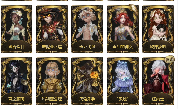 金皮25:聂莫黎 变彩 司药 红骑士 名誉首席 哲人石 灰云 灾厄之主 盛夏飞盘 欧律狄刻 招风旗 椰香假日 垂泪的神女 首席顾问 玛利亚公理 鬼烛 民谣乐手 花祭 盖提亚之遗 拉塔托斯克 不屈的信仰 片刻闲暇 未至之人 贝拉夫人 尼德霍格