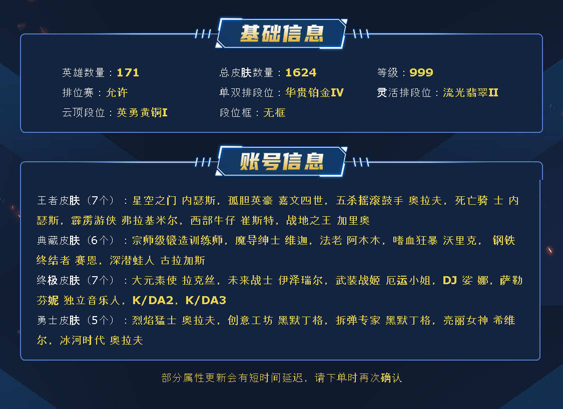 ~~喜欢记得收藏~~可排位~~1613皮全英雄丨1087原皮526炫彩~~租之前尽量查一下游戏ID,确保段位是您需要的,避免浪费您的时间~~请勿挂机逃跑故意送人头,谢谢合作,谢谢~~