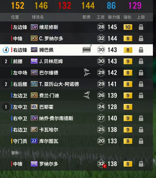 皇马套,看图片,玩儿的时候麻烦先加绿泡泡中前场140,二级密码9999,金球罗姆巴佩ty罗维尼修斯