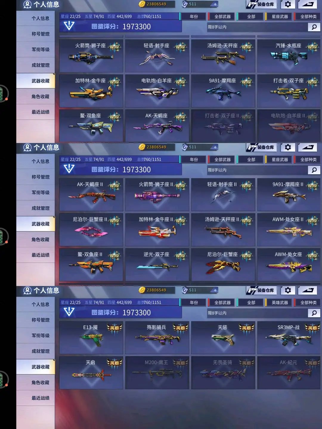 8臻品皮肤 满异彩 多套装 满星座