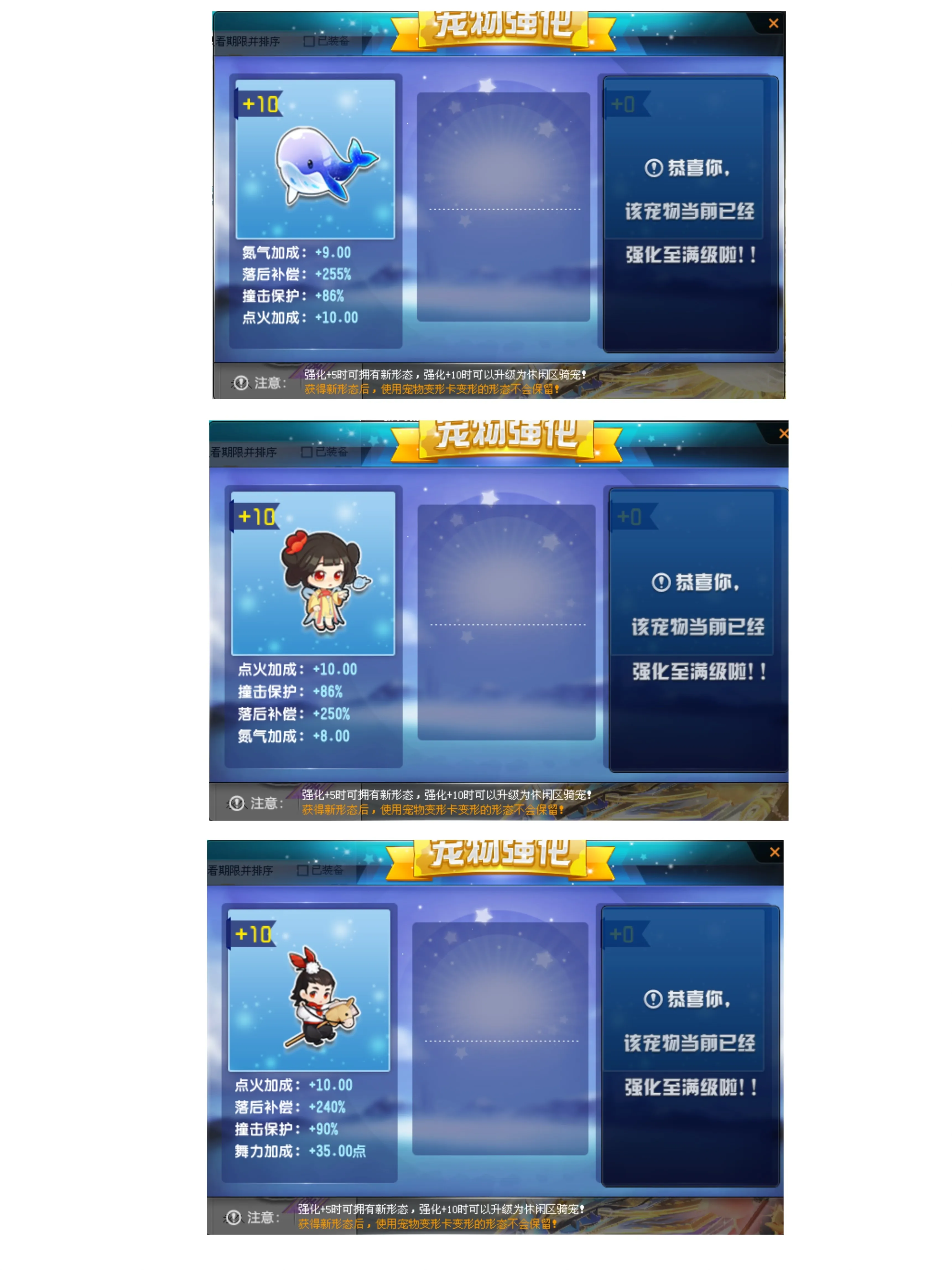 大量骑宠(3龙王+游鸿蓝鲸+10、小贵妃10、小吕布10+其他)