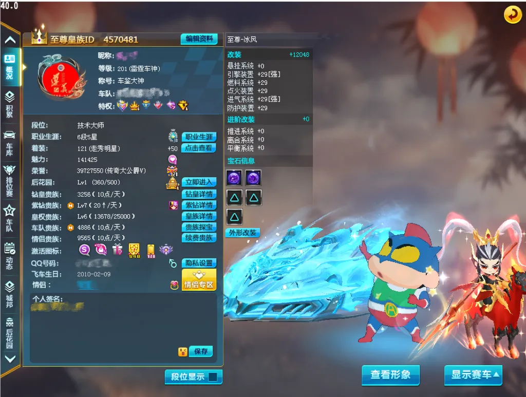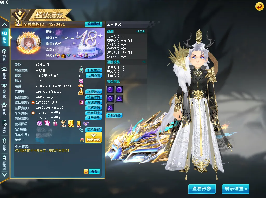激活未改装(13辆):心悦至尊帝王、至尊爆天甲、风怒、紫电神驹、雷蛇、赤道极光、时空战舰、龙胆逆鳞、暗影龙骑、星之精灵、s黄金剃刀、s黑金剃刀、猛兽