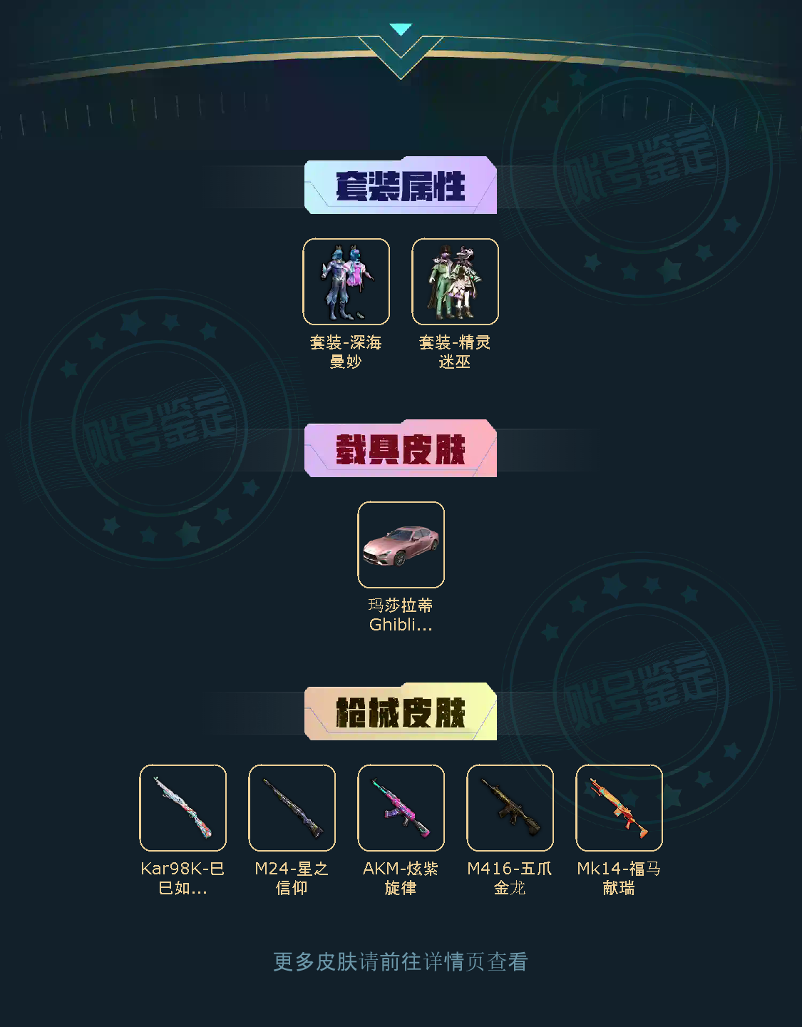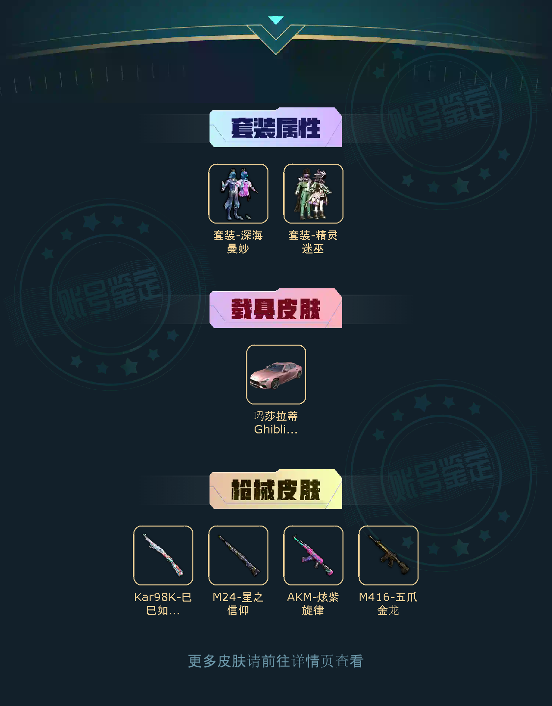 【苹果】 和平精英✨百分百上号✨3特效枪✨2粉装✨1载具✨星之信仰✨五爪✨炫紫旋律✨玛莎拉蒂粉✨深海套✨精灵套