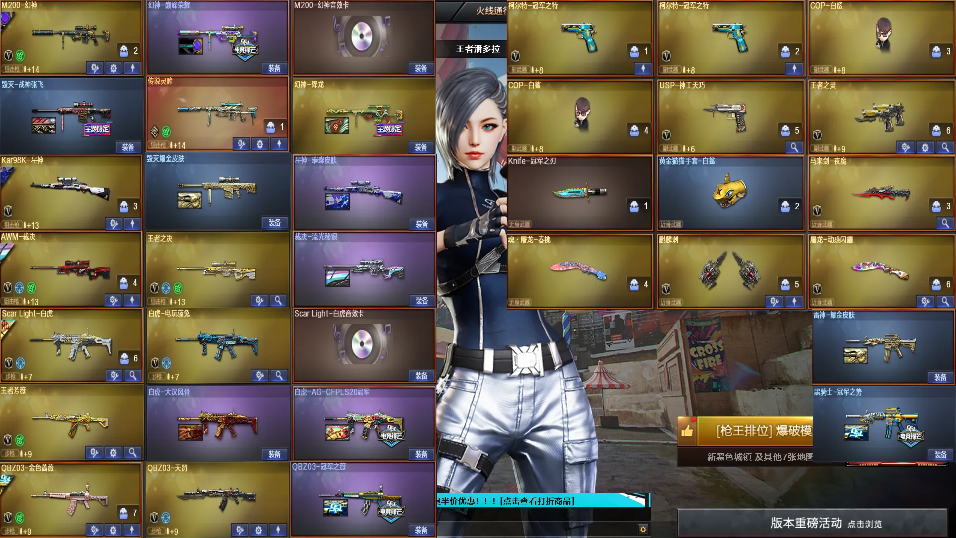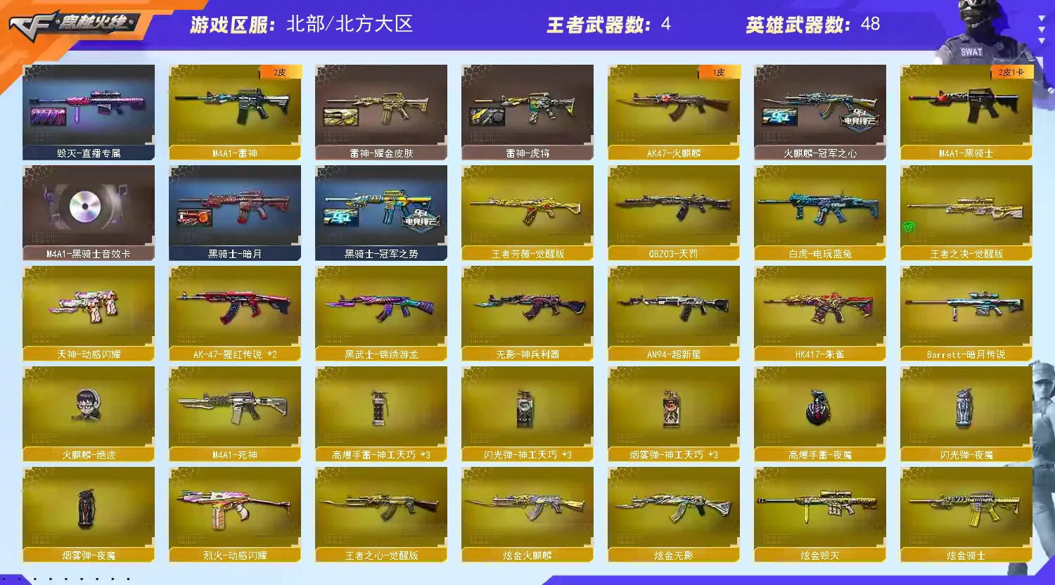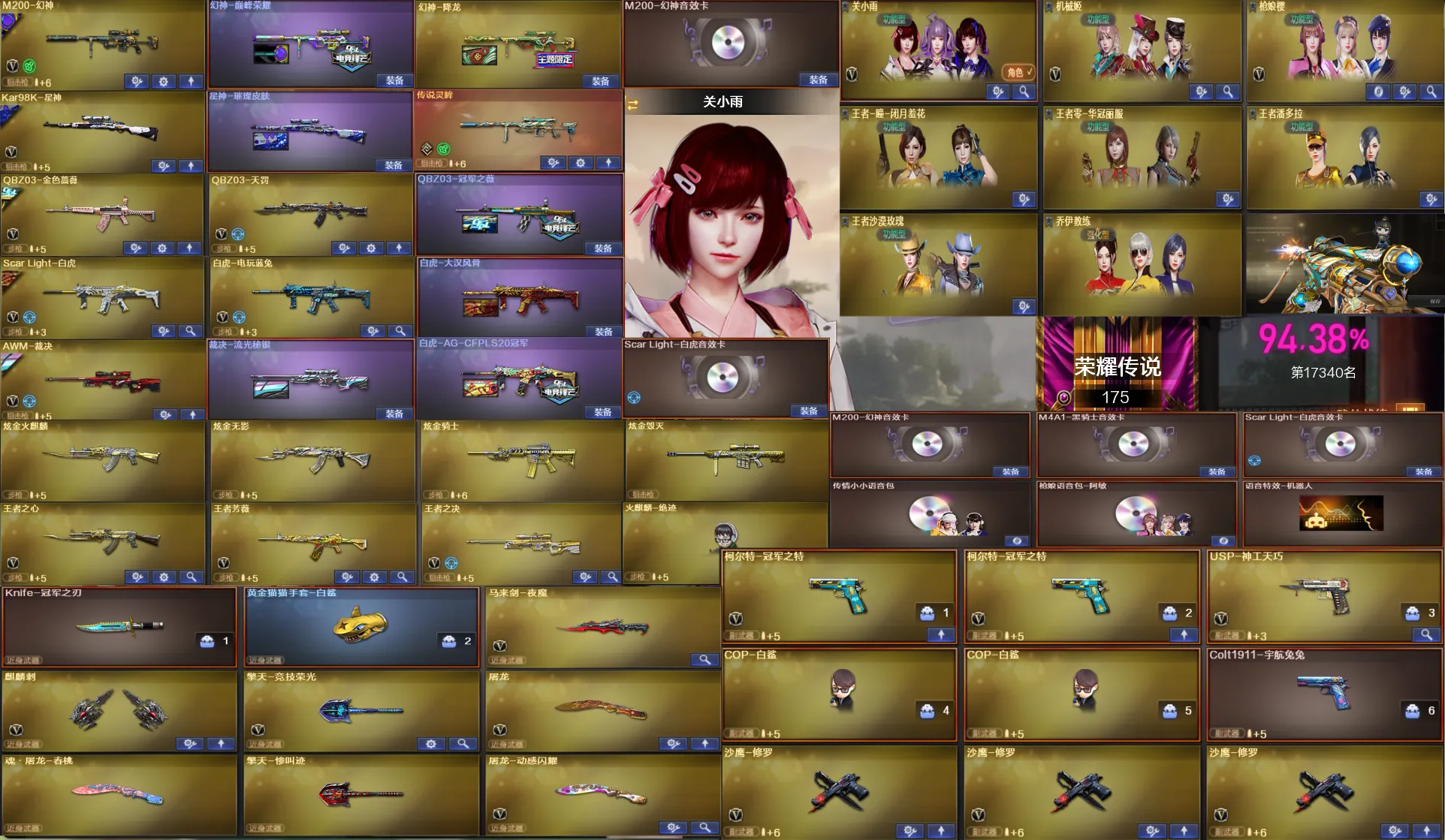 🔥热门枪械:传说灵眸+王者芳薇+王者之心+朱雀+手枪满配+电玩蓝兔+王者之决+炫金火麒麟+炫金无影+炫金骑士+冠特冠刃🔥