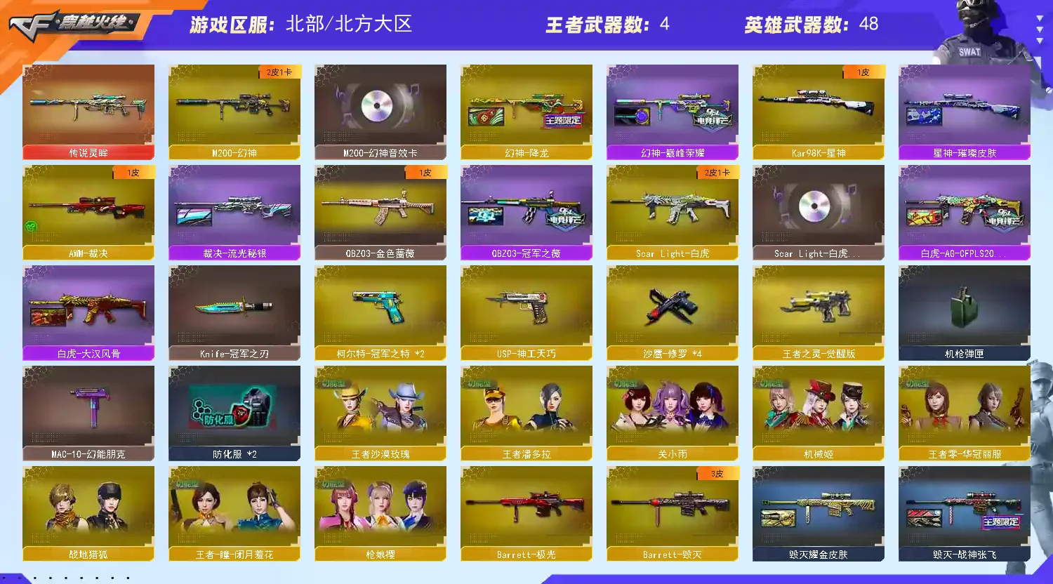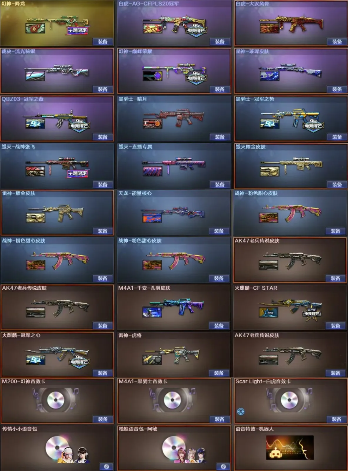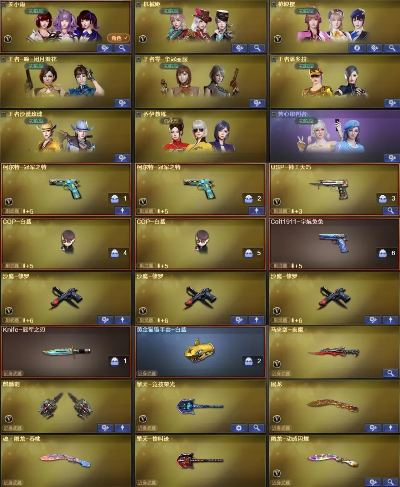 🔥热门枪械:传说灵眸+王者芳薇+王者之心+朱雀+手枪满配+电玩蓝兔+王者之决+炫金火麒麟+炫金无影+炫金骑士+冠特冠刃🔥