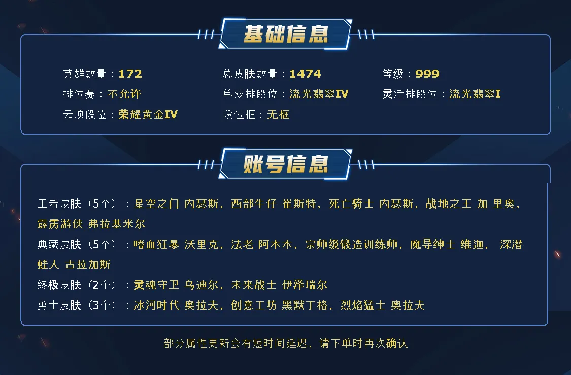 ~~喜欢记得收藏~~可排位~~1500全英雄丨754原皮416炫彩~~租之前尽量查一下游戏ID,确保段位是您需要的,避免浪费您的时间~~请勿挂机逃跑故意送人头,谢谢合作,谢谢~~