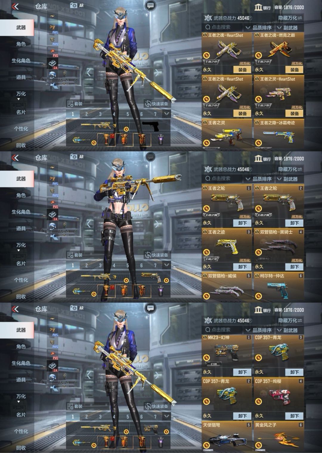 ❤️🔥副武器:女团/燃竞王魂✨女团王灵✨冰霜王隐✨王轮✨王灵✨王迹✨威侯双管✨黑骑士双管✨柯尔特仲达✨Mk23幻神✨COP青龙✨COP绚樱✨天使猎弩✨黄金风之子✨