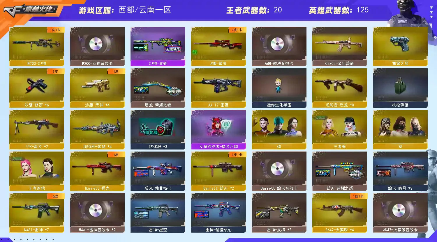 【不允许排位】幻神+青鹤+幻神音效卡,QBZ/王者之魄,毁灭+荣耀皮肤+音效卡,8烈4炼狱2盘龙,cop雷霆