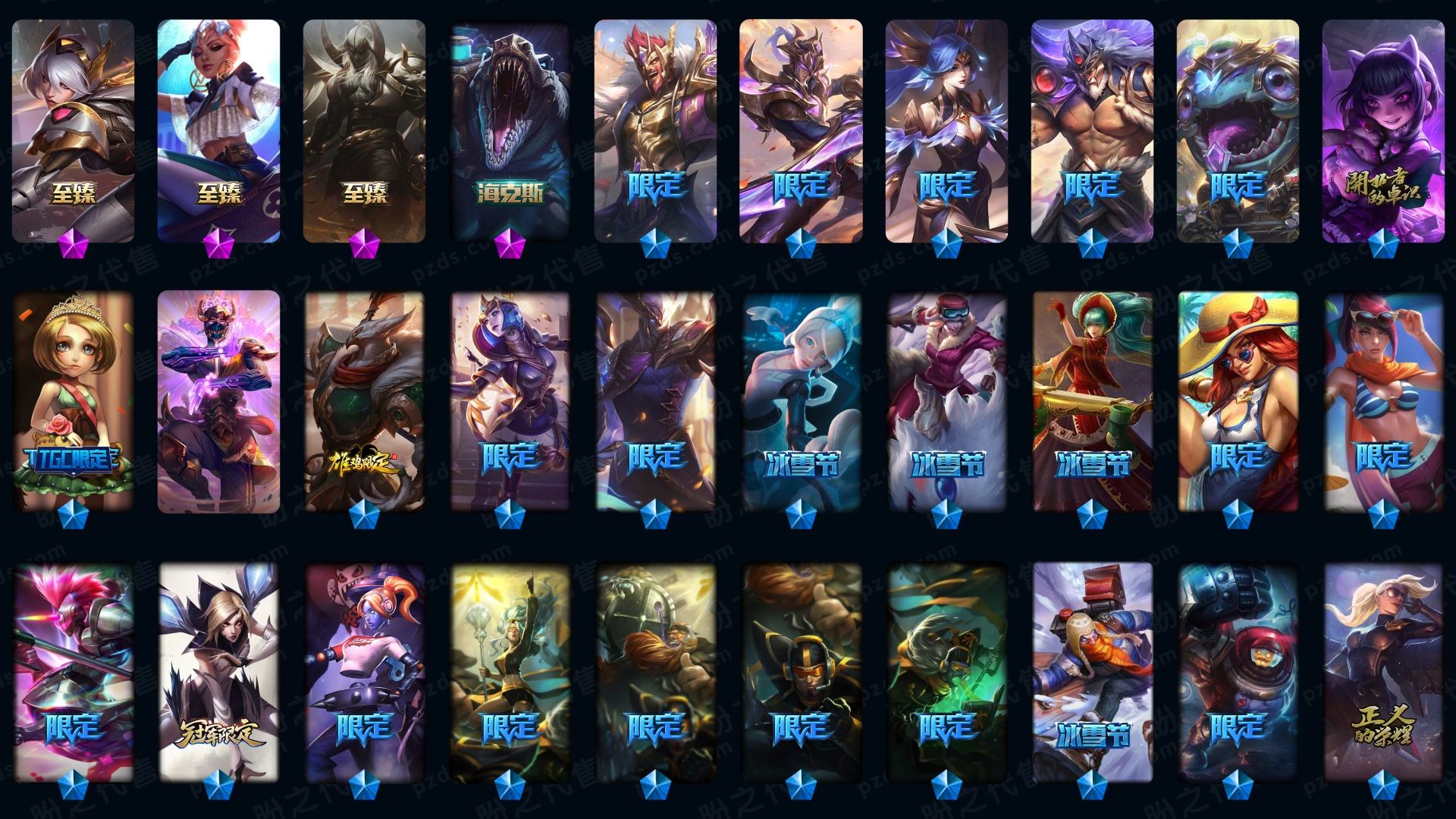 3401皮肤〓可排位妹子号白银〓全英雄〓37神话〓31臻彩〓365炫彩〓生肖套〓至臻剑魔刀妹奇亚娜〓彩虹冠军哥特泳池神拳神王星守护暗星幻灵灵幻莲花源计划