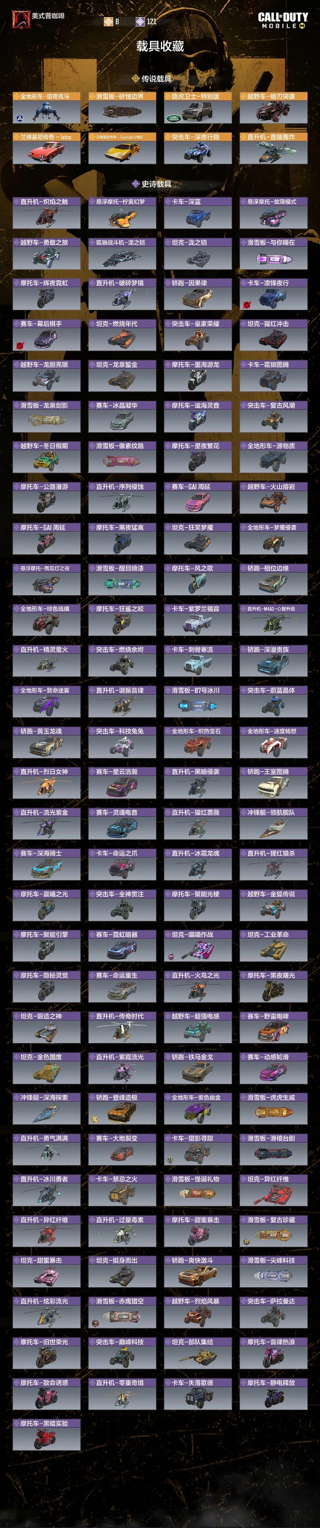 - 传说载具: 8