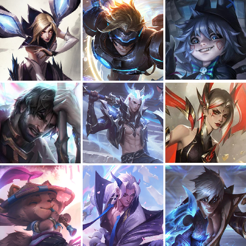 【重要炫彩】无畏骑士瑟庄妮赤子初心 神龙尊者圣龙李青龙腾云起 觅心萝莉金克丝是心动啊 净雪之月莫甘娜冬虹 玉剑传说翼剑仙珠光 玉剑传说无劫胭脂 源计划联合艾希红莲之弓 幻灵战斗猫金克丝梦幻强袭 霸天异形卡兹克掠空魅影 霸天异形卡兹克刹那银光 西部魔影卢锡安圣辉牛仔 星之守护者卡莎热情之光 星之守护者霞烈羽 星之守护者金克丝黑洞 黎明使者锐雯黑夜使者 胜利女神瑟庄妮灵活排位最强王者 战斗学院伊泽瑞尔白金学长 灰烬杀手塞拉斯余烬觉醒 灰烬骑士莫德凯撒余烬觉醒 奥德赛娑娜恒星游历者 灵魂莲华莉莉娅春晓 魔女婕拉贪婪 永恒之森霞樱落 糖果大战伊芙琳樱桃奶昔 魔女乐芙兰贪婪 魔女丽桑卓欲望 黎明使者奈德丽霞辉 日蚀骑士希维尔浪漫 铁哥们儿奥拉夫粉红铁汉 我樱花羽饰骑士崔丝塔娜 梦魇冰王图奇 地狱火韦鲁斯骄傲之焰 国王佛耶戈月下 黑暗骑士赵信魅惑劫掠者 奥德赛亚索恒星游历者 黑帮管家布隆造梦大师 这货不是银狐库奇 禁卫机甲费德提克浪漫湮灭 可爱可爱粉红红黑默丁格 奥德赛墨菲特恒星游历者 创世之神玛尔扎哈丰收之风 黯晶巨鳄雷克顿凝结之梦 串烧大师兰博免费果汁机桃汁 废土男爵兰博音波爆裂 闭月之颜貂蝉炫金莲华 魔女阿狸饕餮 殿堂传奇乐芙兰登神 魔女阿卡丽虚荣 墨之影武者亚索金墨耀影 心之钢伊泽瑞尔天纵才华 海之歌艾希冰爽浪花 天龙之子卡莎飞龙乘云