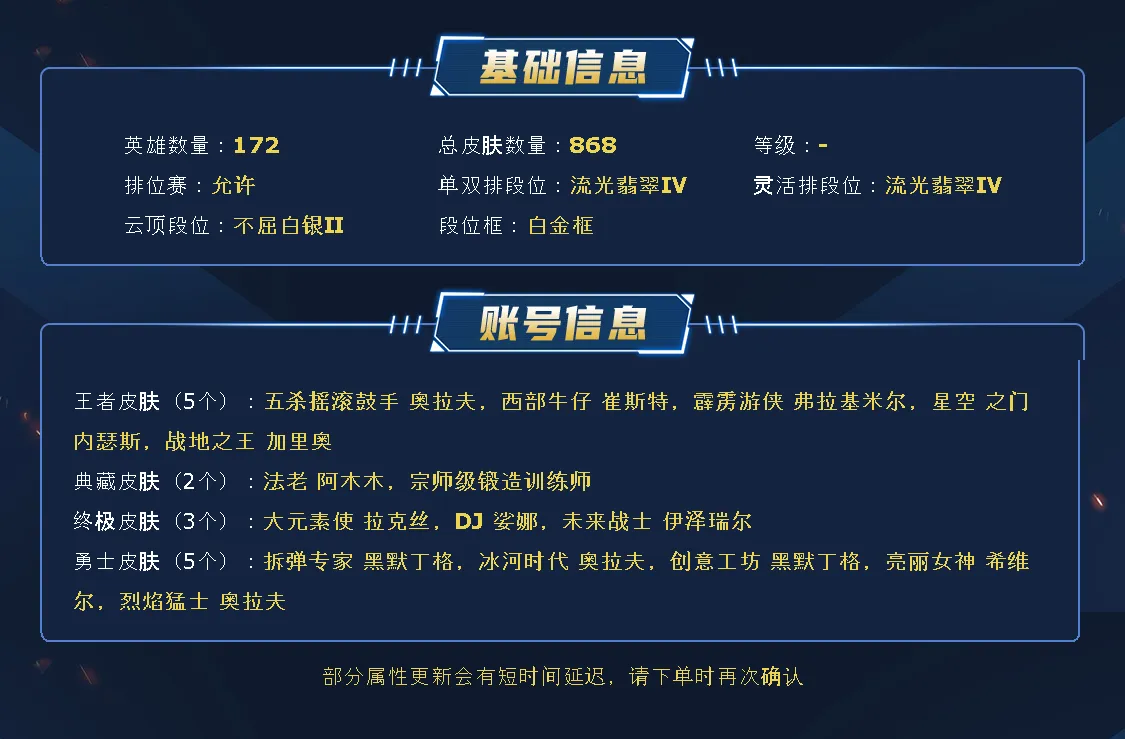 首页 > 英雄联盟 > /联盟五区 /无畏先锋 > 商品编号:918095