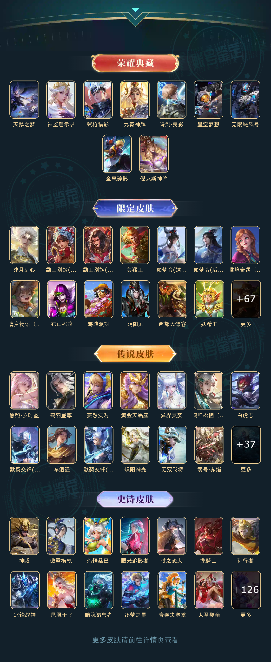 贵族等级V10,英雄数量124,典藏皮肤数9,皮肤数量458,
