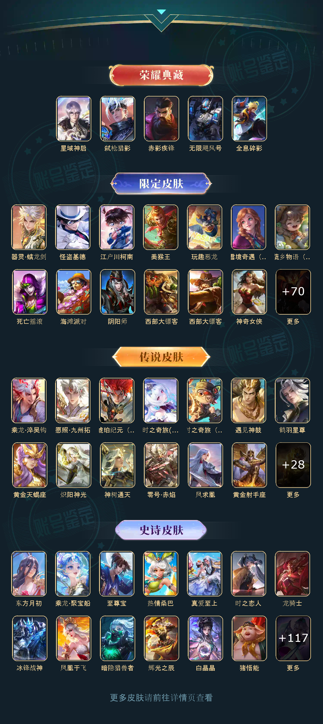 贵族等级V10,英雄数量124,典藏皮肤数4,皮肤数量440,无限飓风号/全息碎影