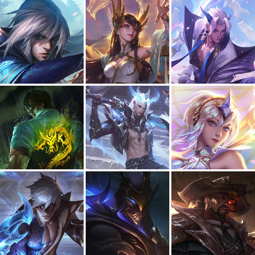【重要皮肤】灵魂莲华易至臻 海之歌萨勒芬妮至臻 幻灵战斗猫金克丝至臻 青花瓷拉克丝至臻 神凰行者烈羽焰凰霞至臻 女帝黛安娜至臻 战斗学院蕾欧娜至臻 魔女婕拉至臻 魔女乐芙兰至臻 奥术师佐伊至臻 真实伤害亚索至臻 真实伤害赛娜至臻 星之守护者索拉卡至臻 灵魂莲华提莫至臻 灵能特工伊泽瑞尔至臻 源计划逆流塞拉斯至臻 王国机神玄武盖伦至臻 暗星墨菲特至臻 神龙尊者炎龙瑟提至臻 黑夜使者凯隐至臻 神龙尊者均衡之龙沃利贝尔至臻 飞升战神潘森至臻 焰执事布兰德至臻 KDA二代卡莎至臻 KDA伊芙琳至臻 KDA伊芙琳2022至臻 魅惑女巫厄运小姐至臻 源计划正义艾瑞莉娅至臻 源计划正义艾瑞莉娅2022至臻 绒毛菲兹至臻 绒毛菲兹2022至臻 玉剑传说武剑仙至臻 玉剑传说武剑仙2022至臻 未来战士锤石至臻 未来战士锤石2022至臻 黑夜使者李青至臻 黑夜使者李青2022至臻 灰烬骑士派克 灰烬杀手塞拉斯 海克斯科技雷克顿 海克斯科技斯维因 海克斯科技吉格斯 海克斯科技波比 海克斯科技阿木木 海克斯科技拉莫斯 暗星科加斯 光明哨兵奥拉夫 恐惧新星德莱厄斯 零之枪骑赫卡里姆 摄魂使者薇恩 胜利剑圣易 胜利女神娑娜 胜利之王泰达米尔 胜利巨口克格莫 舞会公主安妮 庆典女皇艾尼维亚 养蜂人辛吉德 电玩女神厄运小姐 电玩勇者锐雯 电玩女神阿狸 星之守护者伊泽瑞尔 玉剑传说无影 玉剑传说舞剑仙 神凰行者烈羽焰凰霞 星之守护者佐伊 龙的传人李青 虎头虎脑崔丝塔娜 烈焰仙子黛安娜 龙腾虎跃瑟提 猛虎下山赵信 招财进宝提莫 替父从军花木兰 神龙烈焰金克丝 古琴余韵娑娜 北辰之威内瑟斯 美猴王孙悟空 玉净夜叉凯特琳 紫金罗刹莫甘娜 广寒仙子嫦娥 张辽文远 金猪烈焰瑟庄妮 王国机神青龙德莱文 王国机神白虎贾克斯 福牛守护者厄斐琉斯 胜利枪神卢锡安 胜利之剑亚托克斯 水晶玫瑰阿克尚 幽梦玫瑰伊莉丝 甜心之羽霞 甜心宝贝娑娜 幽梦玫瑰辛德拉 幽梦玫瑰泰隆 水晶玫瑰婕拉 寒冬精灵璐璐 雪球也能爆炸吉格斯 圣诞老人布隆 圣诞老人德莱文 冰雪女神辛德拉 魄罗骑士瑟庄妮 夺命美人卡特琳娜 平安夜女神娑娜 圣诞糖果棒厄运小姐 魅惑女巫迦娜 魅惑女巫莫甘娜 魅惑女巫崔丝塔娜 灵魂收割者索拉卡 克烈古拉伯爵 泳池派对凯特琳 泳池派对厄运小姐 泳池派对格雷福斯 泳池派对李青 泳池派对蕾欧娜 泳池派对瑟提 电玩战魂赫卡里姆 穿星魔锋赵信 送披萨的小姐姐希维尔 制胜金靴李青 制胜金球拉莫斯 EDG厄斐琉斯 EDG佛耶戈 EDG格雷福斯 EDG悠米 EDG佐伊 DWG崔斯特 DWG凯南 SSG纳尔 SSG塔莉垭 SSG嘉文四世 SKTT1扎克 SKTT1娜美 SKTT1艾克 SKTT1奥拉夫 SKTT1卡莉丝塔 SKTT1雷克顿 SSW锤石 SSW图奇 SSW辛吉德 SKTT1贾克斯 SKTT1婕拉 SKTT1李青 SKTT1薇恩 暗杀星奥莉安娜 暗杀星蒙多 暗杀星努努和威朗普 暗杀星伊泽瑞尔 暗杀星慎 Fnatic迦娜 Fnatic库奇 Fnatic古拉加斯 Fnatic嘉文四世 Fnatic卡尔萨斯 冰雪节格雷福斯 冰雪节玛尔扎哈 冰雪节辛吉德 冰雪兽纳尔 防暴士兵格雷福斯 防暴士兵辛吉德 钢铁之翼艾尼维亚 冠军典狱长锤石 冠军蔷薇乐芙兰 冠军之血希瓦娜 鬼影森森茂凯 鬼影重重魔腾 胡桃夹子萨科 惊悚派对阿木木 惊悚派对费德提克 警用试作体K9内瑟斯 蓝色忧郁崔斯特 魅惑女巫娜美 密林猎手提莫 南瓜头费德提克 圣诞精灵崔丝塔娜 圣诞开心鬼提莫 圣诞狂欢基兰 圣诞狂欢努努和威朗普 圣诞老人古拉加斯 圣诞玩偶波比 圣诞驯鹿克格莫 糖果使徒费德提克 外星装甲库奇 无头骑士赫卡里姆 喜庆之树茂凯 邪恶圣诞老人维迦 幸福女神乐芙兰 雪默丁格 雪球也能爆炸吉格斯 野兽猎人德莱文 野兽猎人瑟庄妮 野兽猎人泰达米尔 英勇玩具兵普朗克 勇者阿狸 勇者奈德丽 征服者阿利斯塔 征服者卡尔玛 暗影沃里克 冠军之箭艾希 机械迷城加里奥 阿木木主人不要我了 波比的巧克力工坊 都铎王朝图奇 十五周年纪念希维尔 十周年纪念安妮 源代码乐芙兰 神凰行者瑞羽圣凰艾尼维亚 胜利凤凰艾尼维亚 大元素使拉克丝