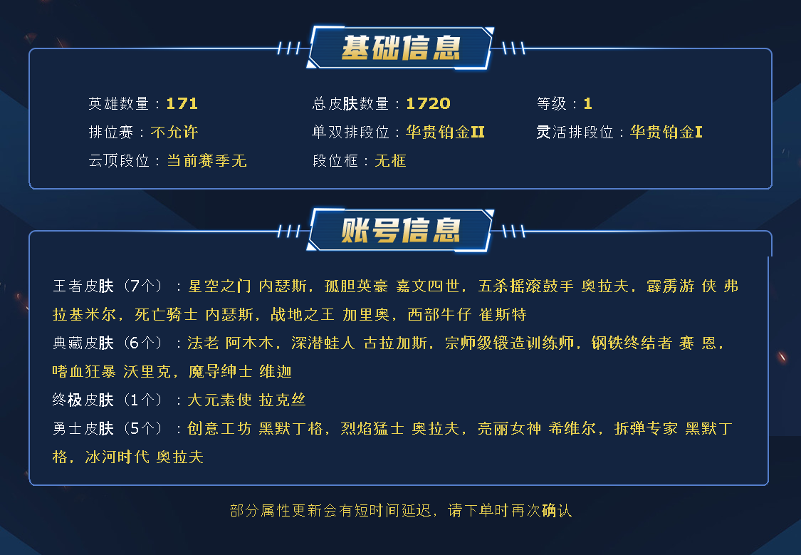 ~~喜欢记得收藏~~可排位~~1800皮全英雄~~租之前尽量查一下游戏ID,确保段位是您需要的,避免浪费您的时间~~请勿挂机逃跑故意送人头,谢谢合作,谢谢~~