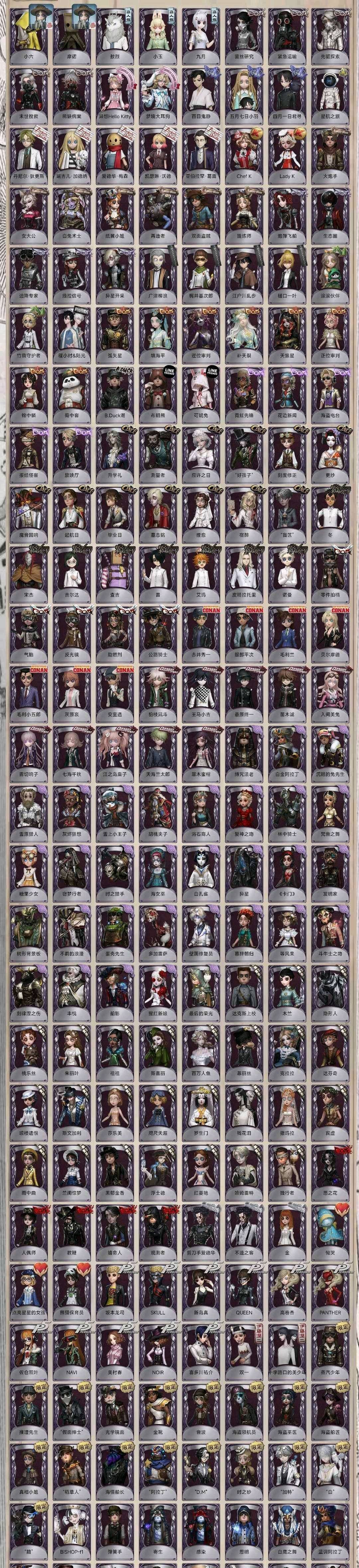 调香摩涅莫绪涅之梦 红夫人希望的残像 名誉首席 珊瑚 驯兽师 克罗托 晖之羽 恶之源 苍鹭之翼 试运者 寒香舞 菖蒲 招风旗 驱魔人 夜行枭 黄金比例 纳西瑟斯 心锁 圣诞信使 日向创 黑白熊 亡灵之主 箜篌 荧 裁决之酒 赤松枫 KING 鸽子般的尤迪特 静默之戟 川上富江 赤宴 十三娘 侑子 永夜极光 中岛敦 太宰治 中原中也 芥川龙之介 明智吾郎 国王的裁缝 铁钩船长 雨燕先生 日落黄沙 墨菲斯的门廊 猎物的印记 哲人石 joker crow 雨宫莲 绯 红骑士 麒麟商人 气象学家 采风的仙灵 昔日的预言者 先知虚妄