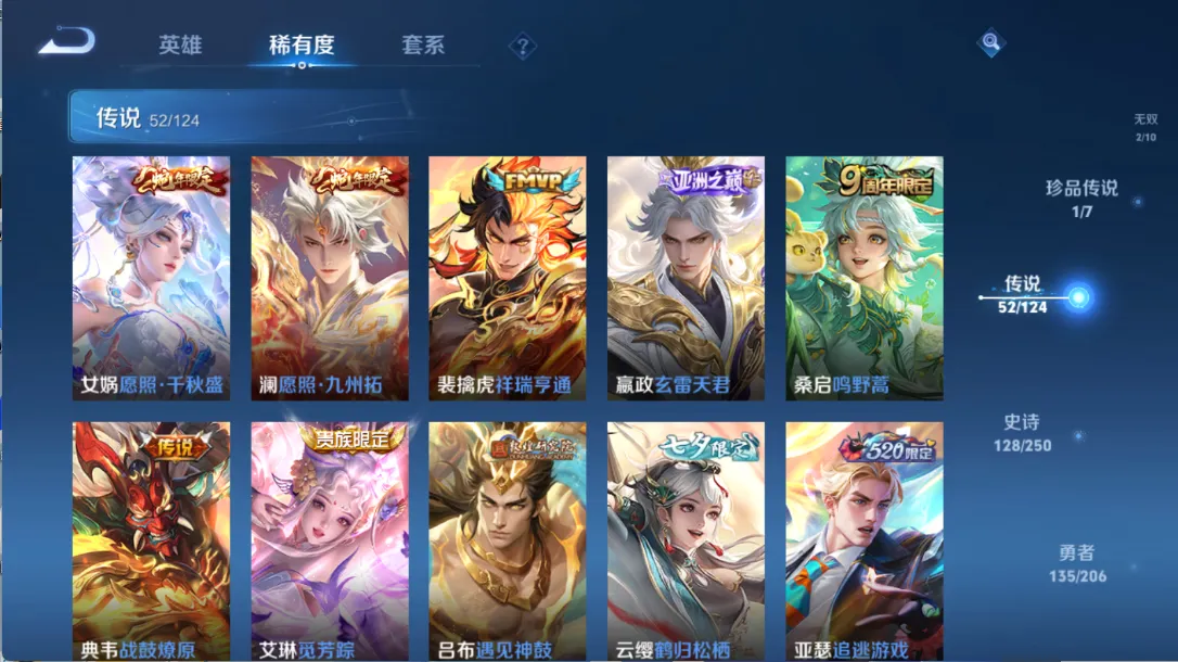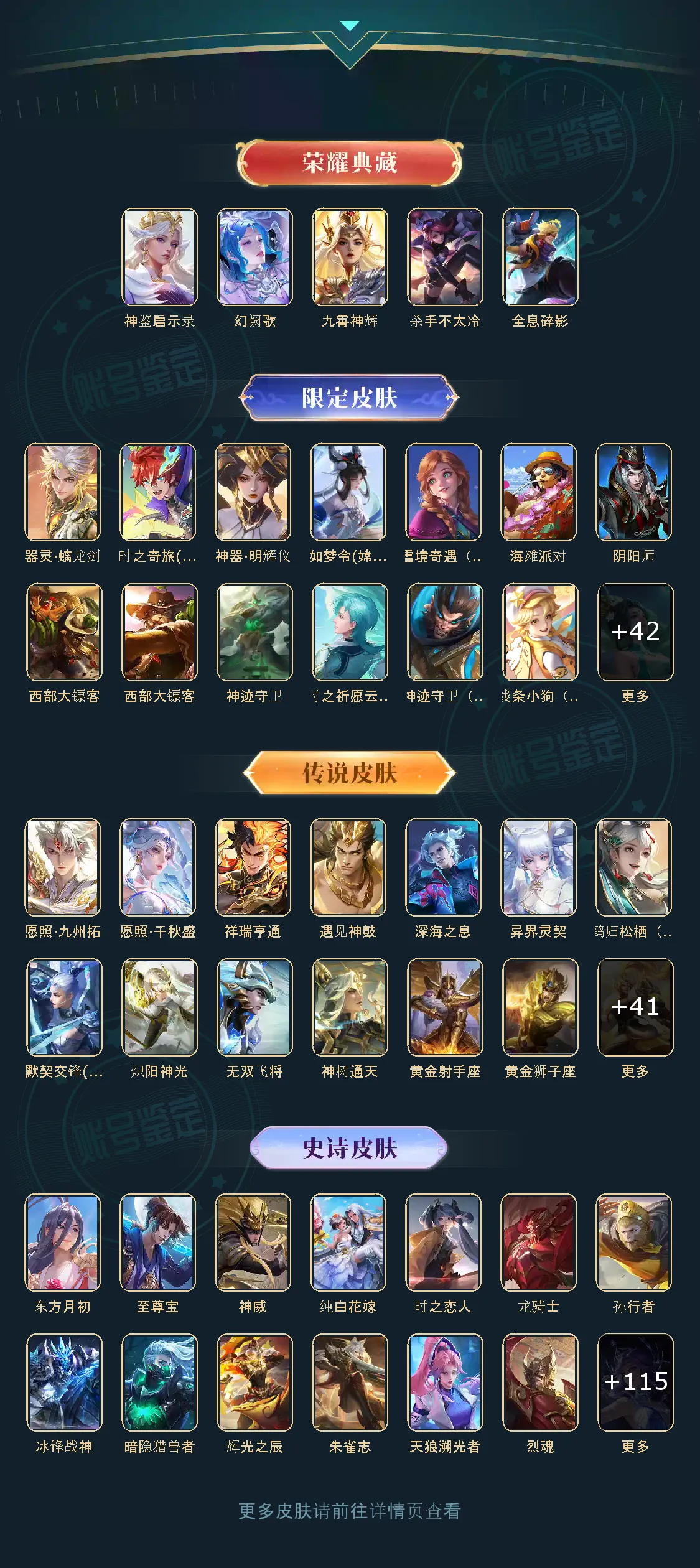 神鉴启示录,幻阙歌,九霄神辉,器灵·螭龙剑,神器·明辉仪,默契交锋(花木兰),炽阳神光,至尊宝,神威,纯白花嫁,愿照·九州拓,无双飞将,遇见神鼓,时之奇旅(孙策),愿照·千秋盛,东方月初,深海之息,异界灵契,祥瑞亨通,神树通天,鹤归松栖(云缨)