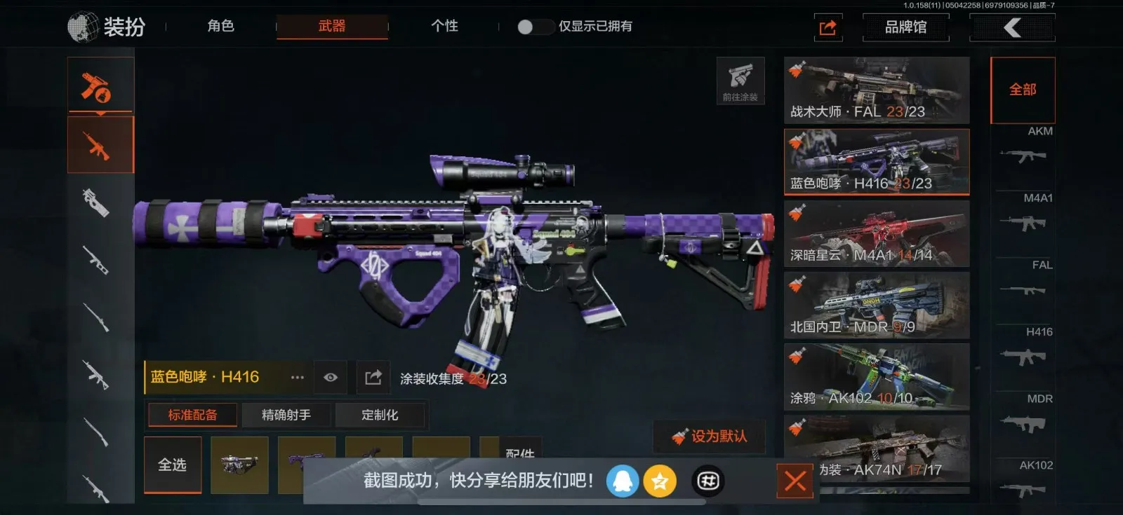 【苹果】 0M黑暗行者,下弦月,涂鸦利仞,禁忌力量手套,战术大师fal,蓝色咆哮h416